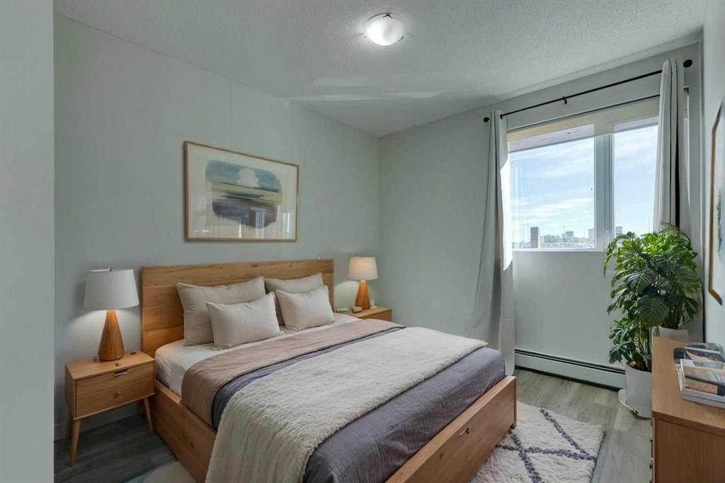 9′ ceilings and more windows than walls in the living room keep things bright and open. Step outside and you’re instantly connected to the Bow River pathways, Studio Bell, the Central Library, and all the best spots in East Village. Don’t forget about the Saddledome and the NEW arena and entertainment district that is already underway. C train, Art Commons, Prince’s Island and soo many other places to mention, means you can walk almost everywhere, but don’t worry about your car feeling neglected. This unit comes with TWO titled parking spots that are secure and heated. You’ve also got a gym, concierge and 24hr security.