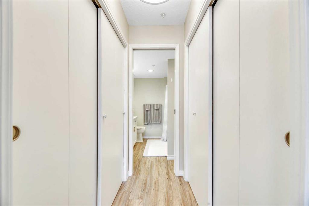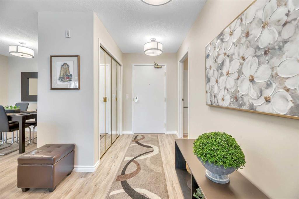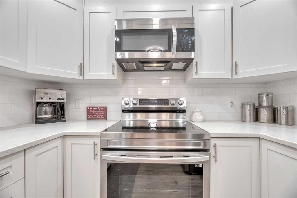 Step inside and you’ll immediately notice the thoughtful updates throughout: newer luxury vinyl plank flooring, fresh paint, stylish lighting, quartz countertops, updated hardware, a chic backsplash, and a full suite of stainless-steel appliances. The primary bedroom features dual closets leading to a beautifully upgraded ensuite with quartz counters, new fixtures, and a modern tub/shower combo. The second bedroom sits next to the equally refreshed main bath—perfect for guests or a hobby space.