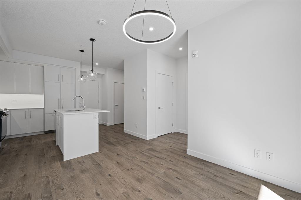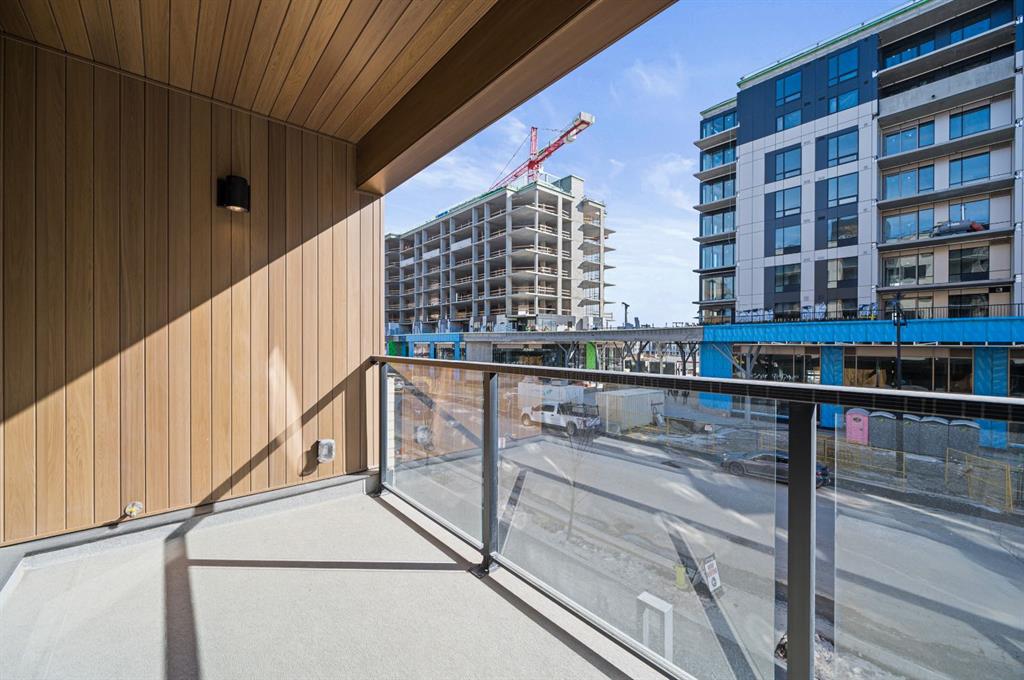 Nestled in the vibrant West District, Mondrian offers a perfect balance of style, functionality, and modern urban living. This 2-bedroom, 2-bathroom + den residence is thoughtfully designed to maximize space while maintaining an inviting, upscale atmosphere—perfect for those who appreciate both comfort and convenience. From the moment you step inside, the open-concept layout creates a seamless flow between the chef-inspired kitchen, dining, and living areas. Premium finishes and high-end appliances—including an integrated refrigerator, gas range, and built-in microwave—add a touch of sophistication, making everyday living both effortless and elegant. The primary bedroom, features a walk-through closet and a 3-piece ensuite with a sleek glass-enclosed shower. A second spacious bedroom provides flexibility for family, guests, or a home office. The den offers additional versatility, perfect for remote work, a creative space, or extra storage. Enjoy the added luxury of in-suite laundry, air conditioning, and stylish window coverings, ensuring a turnkey, move-in-ready experience. The private balcony extends your living space outdoors—ideal for morning coffee or unwinding at the end of the day. Beyond your home, Mondrian elevates the urban lifestyle with a rooftop terrace, offering breathtaking views, stylish seating areas, and the perfect ambiance for relaxation or entertaining. Situated just steps from boutique shops, gourmet dining, green spaces, and everyday essentials, this home delivers unparalleled convenience in one of Calgary’s most desirable neighbourhoods. With Titled Underground Parking, your vehicle stays secure and accessible year-round. This isn’t just a home—it’s an exceptional opportunity to live in the heart of West District. Don’t miss your chance to experience the best of urban living—Mondrian is waiting for you!