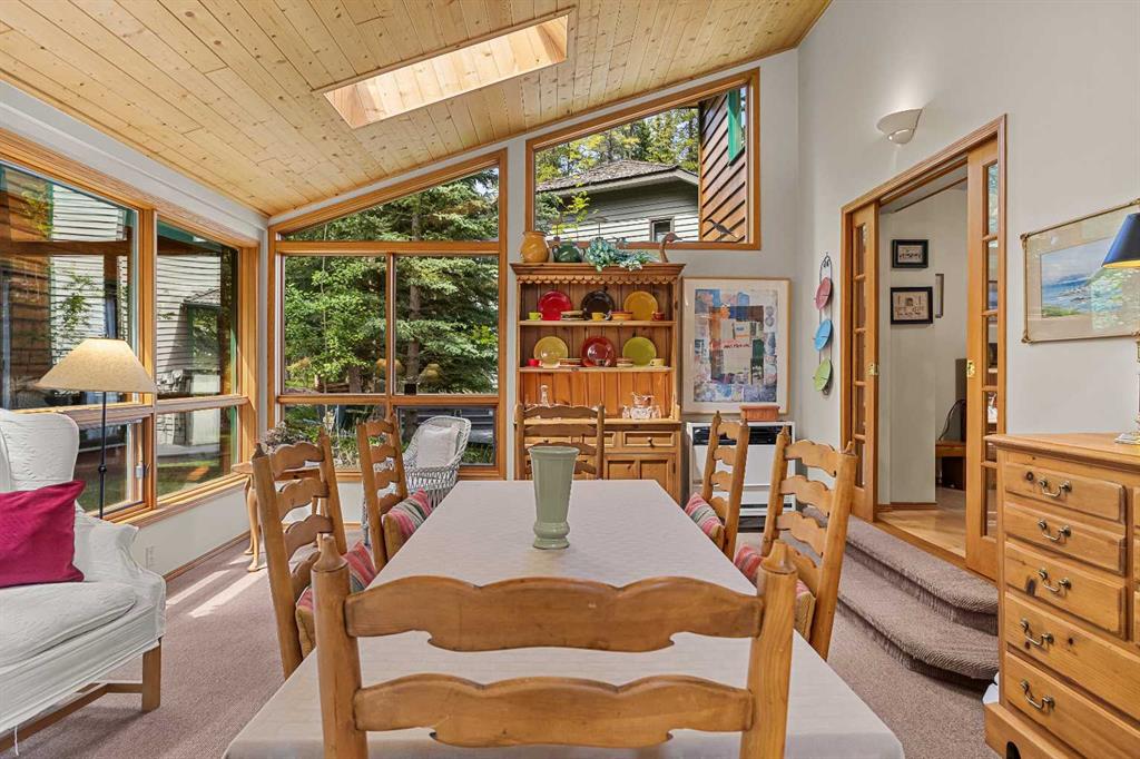 Must be seen! A stylish family home on Canmore’s historic Hospital Hill. Set on a quiet cul-de-sac, just steps from wooded trails leading to downtown, the Nordic Centre and the town’s extensive pathway network. Enjoy over 2,900 sq ft of thoughtfully designed living and entertaining space with 4 bedrooms, 3 bathrooms and 2 kitchens. This warm mountain home features vaulted ceilings throughout, enhancing the sense of space and light. The stunning garden room is filled with sunshine and opens to a tranquil rear yard backing onto a wildlife corridor. There, a charming bunkhouse offers a cozy escape for all ages. The entire upper level of the home creates a spacious and luxurious primary retreat, complete with a private balcony and beautiful mountain views. The lower level provides a self-contained one-bedroom suite with private entry – ideal as a rental unit or for extended family.