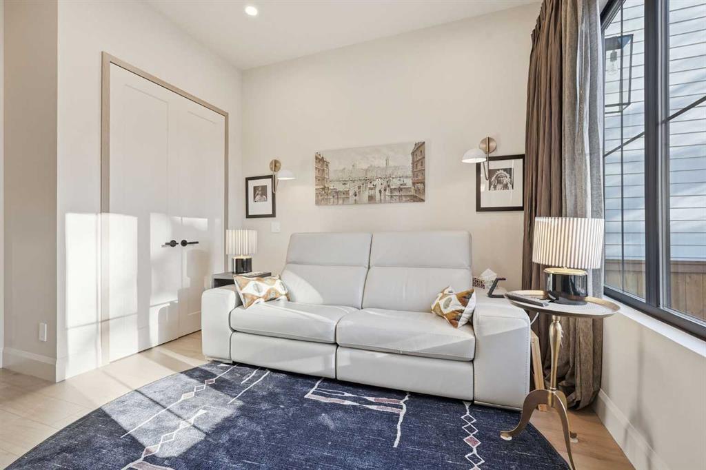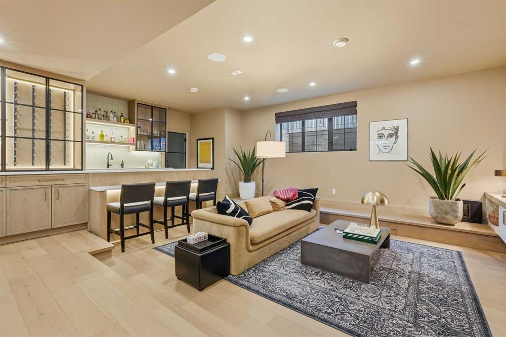 Enduring sophistication defines this beautifully crafted 2+2 bedroom residence in North Glenmore Park, offering more than 4,200 sq ft of refined living space with exceptional attention to detail throughout. The main level showcases wide-plank hardwood floors and soaring ceilings, setting the stage for an impressive living room highlighted by a dramatic vaulted ceiling with chandelier, a floor-to-ceiling window, and a stunning Venetian plaster fireplace. The thoughtfully designed kitchen is a chef’s delight, appointed with custom oak cabinetry, premium quartz countertops, a generous island with eating bar, high-end appliances, and a well-equipped butler’s pantry. Adjacent to the kitchen, the spacious dining area easily accommodates gatherings of family and friends. The main floor primary retreat provides a serene escape, complete with a walk-in closet and a luxurious 6 piece ensuite featuring in-floor heat, dual sinks, a freestanding soaker tub, and an oversized shower with heated bench and floor. A second bedroom with its own 4 piece ensuite offers ideal comfort for guests. A stylish 2 piece powder room, a practical mudroom with ample storage, and a dedicated laundry room with sink and cabinetry complete the main level. Upstairs, the loft area offers an inviting space to unwind, featuring a family room, games area, wet bar, 2 piece bath, and a charming library nook. The fully developed basement extends the home’s versatility with heated floors, a family/media room with bar and wine storage, and a separate games area—perfect for movie nights or entertaining. A glass door behind the bar leads to a room roughed in for a future sauna and shower. Two additional bedrooms, two 3 piece baths (including one ensuite & the other with a steam shower), and a second laundry room complete the lower level. Additional highlights include central air conditioning, custom draperies, two vacuum systems with attachments, and built in speakers. Outdoors, enjoy custom window well railings, an underground irrigation system, a sunny south-facing front patio, and a private back deck with natural gas BBQ hook-up and a beautiful wood-burning fireplace. Parking is effortless with a triple attached garage wired for 220 volt service. Ideally located within walking distance to Glenmore Athletic Park and close to two golf courses, top-rated schools, shopping, public transit, and major routes including Crowchild and Glenmore Trails, this exceptional home offers an unparalleled blend of luxury, comfort, and convenience.