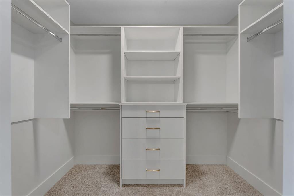 The main floor also offers a spacious bedroom with its own full ensuite and custom built-in closet shelving, plus an additional powder room, ideal for guests or multigenerational living.