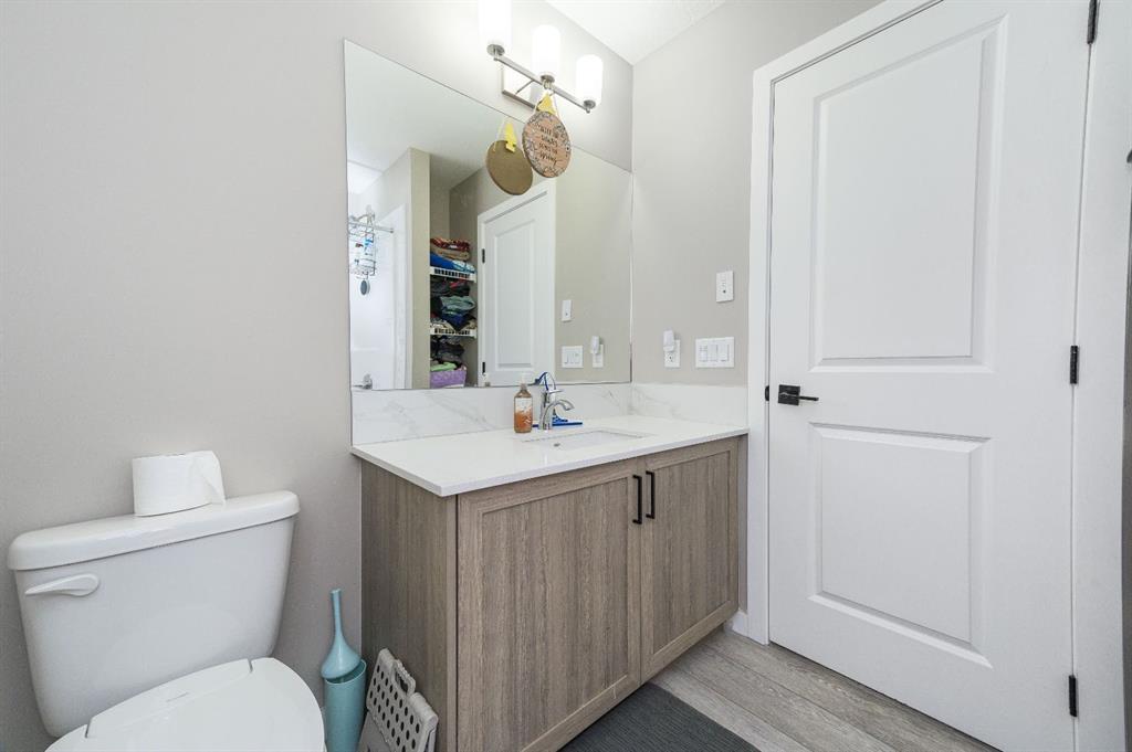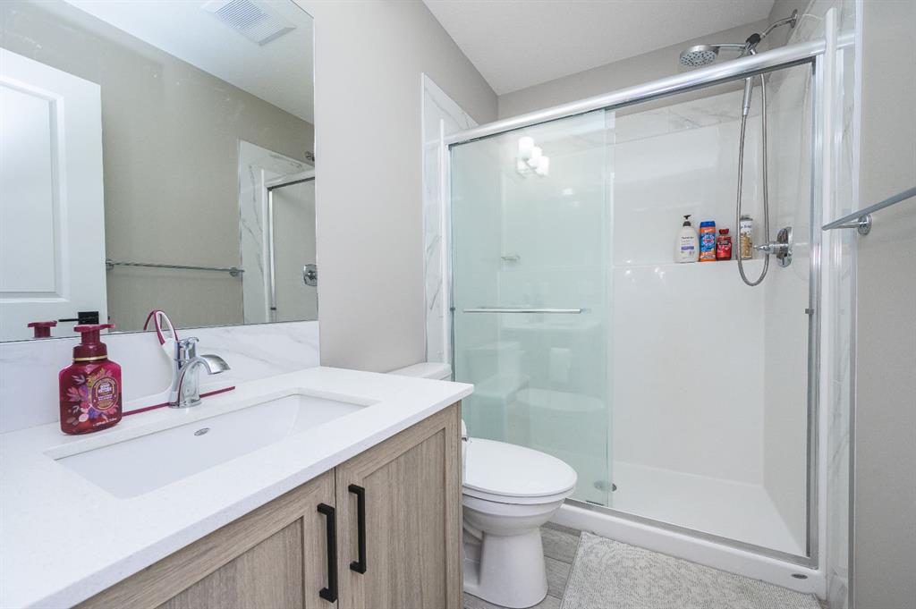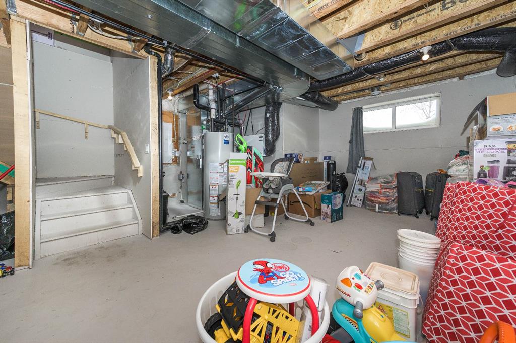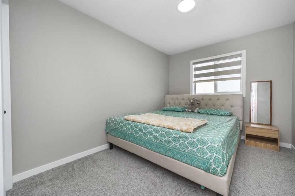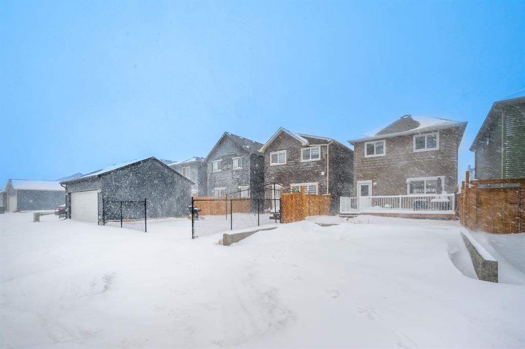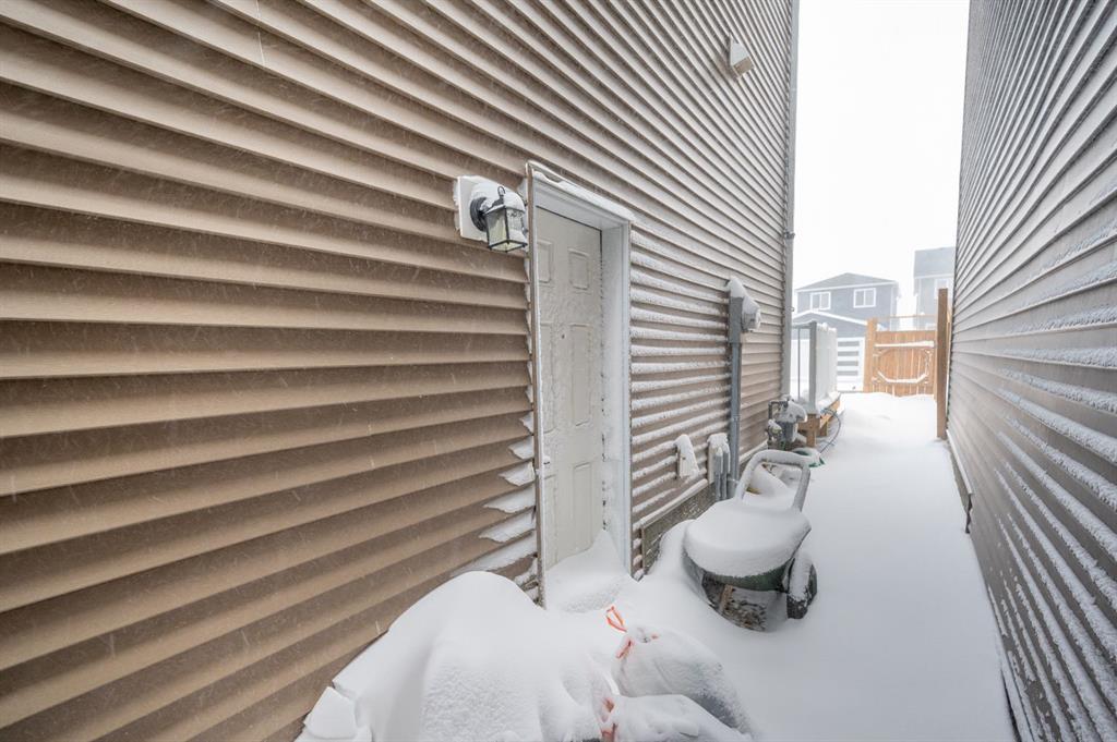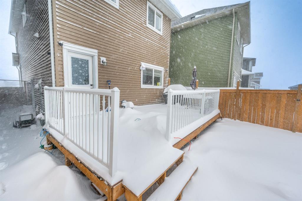 Upstairs, you’ll find three well-sized bedrooms, including a primary suite with its own full ensuite bathroom. An additional full bathroom serves the other bedrooms, and the upper-floor laundry room adds everyday convenience. The unfinished basement comes with a separate side entrance, offering great potential for future development or customization. Outside, the backyard is fully set up and ready to enjoy, featuring a finished deck, fencing, and a two-car parking pad at the rear. Located in the growing community of Cobblestone Creek in Airdrie, this brand-new, young and vibrant neighborhood offers easy access to parks, schools, shopping, and everyday amenities—making it an ideal place to call home.