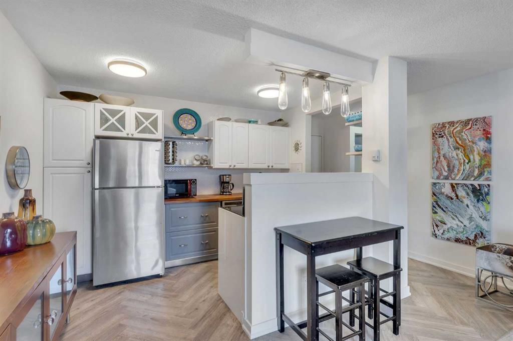Stylish, turnkey 1-bedroom in a quiet, concrete building in the heart of Sunalta — renovated, walkable, and move-in ready. This thoughtfully redesigned condo blends industrial style with smart function. The updated kitchen features a sleek herringbone tile backsplash, wood countertops, and stainless steel appliances. Cook while you entertain guests in the open living room and dining space, and enjoy meals or morning coffee al fresco on the private balcony. The spacious bedroom has plush carpet and a large walk-in closet with a trendy barn door. The 4-piece bathroom renovation includes a glass shower screen, upgraded fixtures, a modern sink ensemble, and tiled floors. There is no shortage of storage in this unit – ample cabinets, pantry space, and two large closets. Other notable features are the luxury vinyl chevron floors, modern light fixtures, freshly painted walls, assigned parking stall and communal laundry room. Set within one of Calgary’s most walkable, urban-yet-residential pockets, this neighbourhood combines historic charm and exciting revitalization. This home sits just outside the downtown core and steps from 17th Ave with easy access to restaurants, bars, breweries, and everyday amenities. It’s a 7-minute walk to the Sunalta C-Train station, across the street from the Calgary Tennis Club – perfectly positioned for those that want to enjoy the lively inner-city scene without being right in it. This apartment is an exceptional option for first-time buyers, investors, or down-sizers seeking a low-maintenance home with nothing left to do but move in.