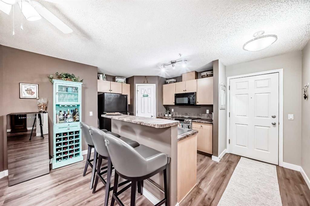 Step inside to find newly installed luxury vinyl plank flooring throughout the main living areas, creating a warm and contemporary feel. The well-appointed kitchen is both functional and stylish, featuring rich maple cabinetry, sleek appliances, a central island with raised breakfast bar, and a garburator—ideal for everyday living and entertaining.