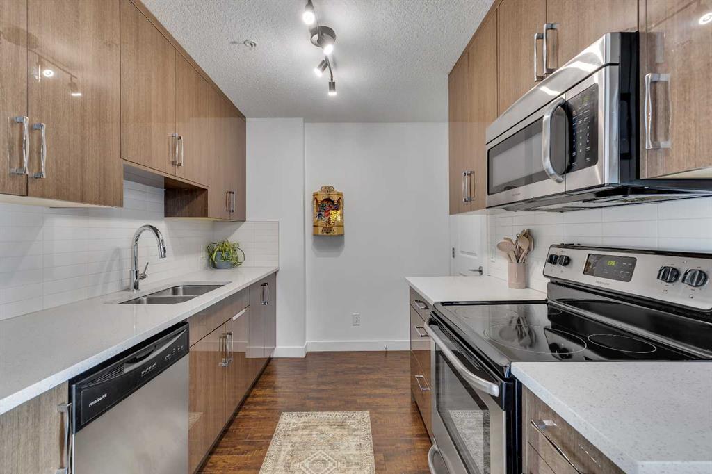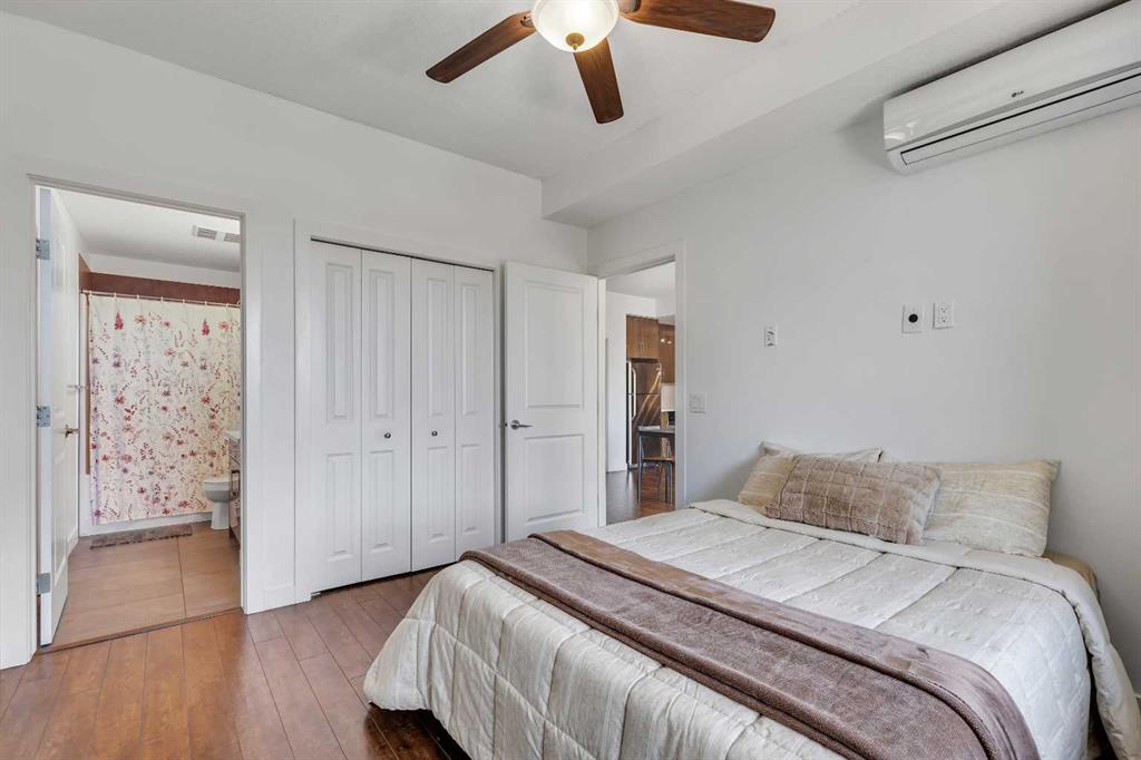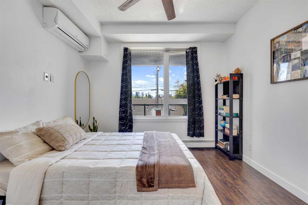 FIRST-TIME HOME BUYER & INVESTOR ALERT! Welcome to this immaculate, move-in-ready 2-bedroom, 2-bathroom condo in the highly sought-after inner-city community of Mount Pleasant. Perfect as a starter home or investment, this stylish unit offers over 800 sq. ft. of bright, open-concept living with 9’ ceilings, laminate flooring, and south-facing windows that fill every room with natural light. The modern kitchen is beautifully equipped with quartz countertops, stainless steel appliances, full-height cabinetry, and a spacious walk-in pantry, while the open dining and living areas flow seamlessly onto a large south-facing balcony with a BBQ gas hookup—perfect for relaxing or entertaining. The two bedrooms are ideally positioned on opposite sides of the unit for added privacy, including a primary suite with ensuite bathroom and custom California Closets. Additional highlights include two LG wall-mounted A/C units, upgraded lighting and ceiling fans, custom top-down/bottom-up blinds, and in-suite laundry. This well-maintained building offers titled underground heated parking, an assigned storage locker, bike storage, visitor parking, and elevator access. Tucked away on a quiet residential street just off 16th Avenue, the location offers the best of both worlds—peaceful living with unbeatable convenience. You’re just steps from Crescent Heights with stunning downtown views, parks, and schools, and within walking distance to SAIT, the LRT, shopping, and restaurants. Foothills Hospital and the University of Calgary are just a short drive away, and downtown is only 5 minutes from your doorstep. With unobstructed city views, abundant sunlight, and a versatile layout ideal for roommates or generating rental income, this condo offers exceptional value in one of Calgary’s most desirable neighbourhoods. Don’t miss this must-see home—it won’t last long!