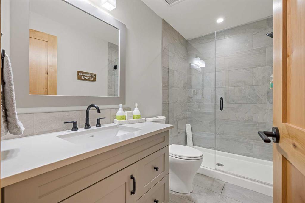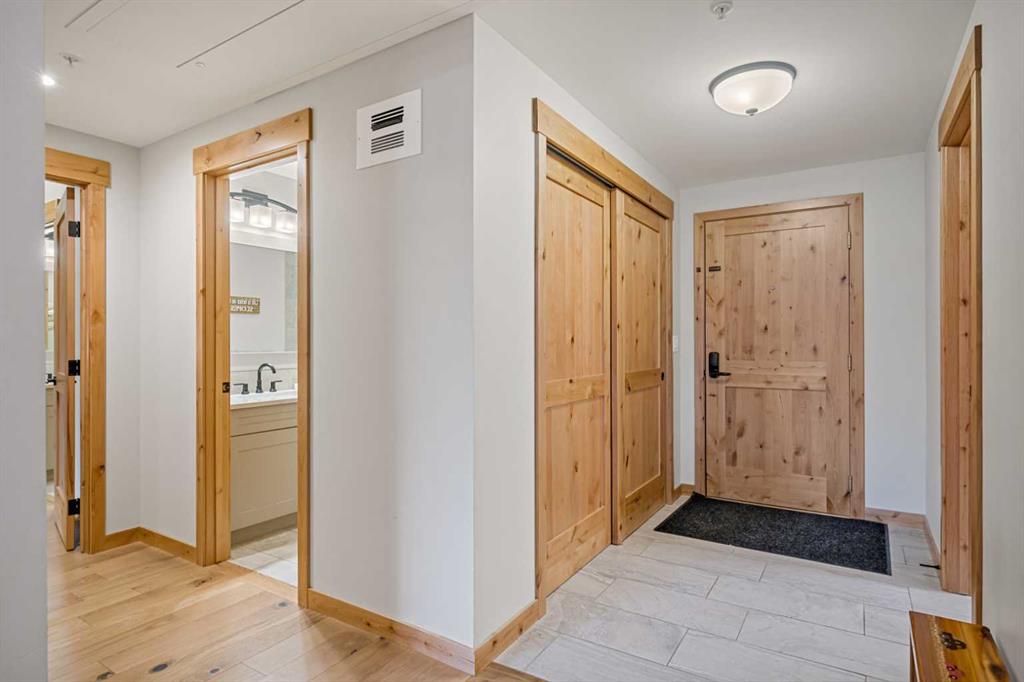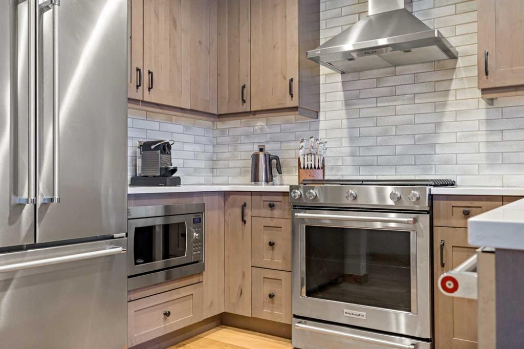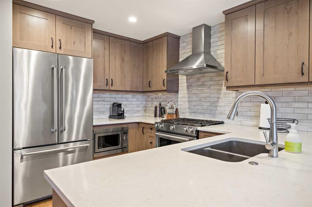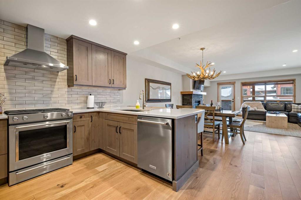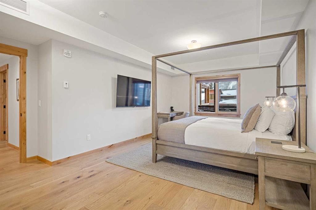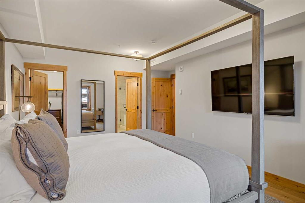 Immaculate and rare 2-bedroom plus den (functions as 3rd bedroom) luxury condominium in White Spruce Lodge in the heart of Spring Creek. This property carries the “tourist home” designation permitting short-term vacation rentals. Sold fully furnished and turn-key for immediate rentals, with many reservations already on the books for 2026! Owners and rental gusts will enjoy the open concept living with spacious living areas ideal for families or gatherings with a large gourmet kitchen complete with stainless appliances, quartz counters and plenty of cabinet space, a large dining area and living room, perfect for entertaining. Enjoy outdoor living with 2 large covered decks, facing SW/W with great views of Ha Ling Peak and the entire Rundle Range. The den has two full size built in bunk beds, perfect for the kids! The large primary bedroom features king, a walk-in closet and 5 piece ensuite. White Spruce Lodge has an inviting courtyard hot tub with fantastic views and an exercise room on the main level. White Spruce Lodge is located adjacent to the Plaza in Spring Creek with shops, Bridgette Bar restaurant and is just a short stroll to Main Street Canmore along the lovely creek paths to downtown.