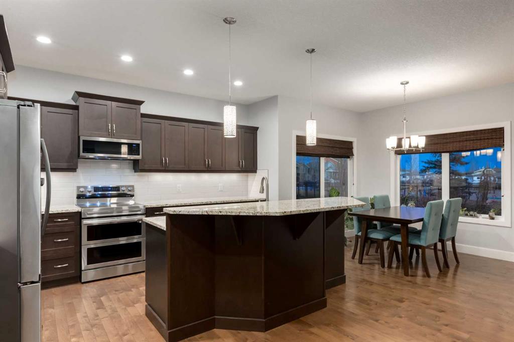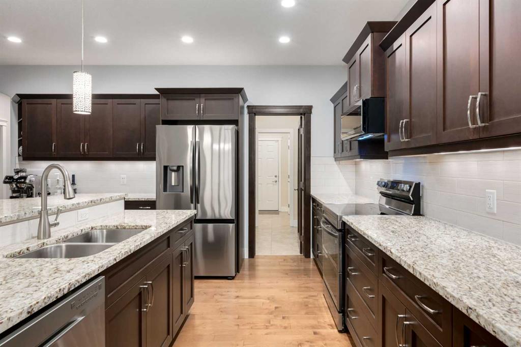 Wake up to laughter, green space & endless outdoor fun right in your backyard. BACKING ONTO a playground, bike pump track & water park, this beautifully crafted 2-storey home offers a lifestyle that’s hard to beat! Built by Executive Builders/Michaels Homes, the home showcases OVER 3200sqft of total space, quality construction & timeless finishes, including rich hardwood floors, low-E windows & meticulous attention to detail throughout. The heart of the home is its bright, open-concept main floor—designed for connection, comfort & entertaining. The kitchen is both stylish & functional with dark-stained maple cabinetry, granite countertops, a WALK-THROUGH butler pantry & a large granite island that naturally becomes the hub for homework, casual meals, or catching up with friends while dinner comes together. Open sight-lines flow seamlessly into the dining & living areas and out to the deck, creating an inviting space where family life unfolds with ease. Whether you’re cozying up by the fireplace on cooler evenings or enjoying summer days outdoors, this home is made for every season. The backyard is thoughtfully designed for entertaining and relaxation, featuring a fire pit & convenient gas hook-ups for your BBQ—perfect for hosting gatherings or unwinding under the stars. Beautiful perennials enhance both the front and backyard, adding colour, charm & low-maintenance curb appeal year after year. Upstairs, the primary bedroom is a private retreat, complete with a WALK-IN CLOSET & spa-inspired 5-PIECE ENSUITE featuring a DOUBLE VANITY, separate shower & deep soaker tub. No need to haul laundry up and down flights of stairs—the TOP FLOOR LAUNDRY ROOM adds everyday convenience. A spacious BONUS ROOM with 11′ VAULTED CEILINGS, a cozy window reading nook (w/ storage) offers the perfect flex space for movie nights, a playroom or quiet lounge. Two additional bedrooms & a full four-piece bath complete the upper level. Thoughtful extras elevate the home even further, including a well-appointed main floor office space, a functional mudroom w/ oversized closets, in-floor plug-ins in the living room to make any furniture configuration work, central vacuum system & an OVERSIZED HEATED DOUBLE ATTACHED GARAGE complete with BUILT-IN SHELVING, a WORK BENCH & an additional man-door at the rear of the garage —ideal for projects, hobbies, organized storage & yard maintenance . The unfinished basement offers a blank canvas ready for your vision—already enhanced with roughed-in IN-FLOOR HEATING for year-round comfort, whether you dream of a future additional family room, home gym, guest space, or creative retreat. Additional highlights include REFRESHED interior paint (November/December 2025), NEW KITCHEN APPLIANCES (2023), NEW WASHER & DRYER (2024) & NEW CLASS 4 SHINGLES (2024). Set in a sought-after NW location in High River. Close to excellent schools, scenic walking paths, a golf course, shopping & more— this isn’t just a house, it’s a place where memories are made & lifestyles thrive.