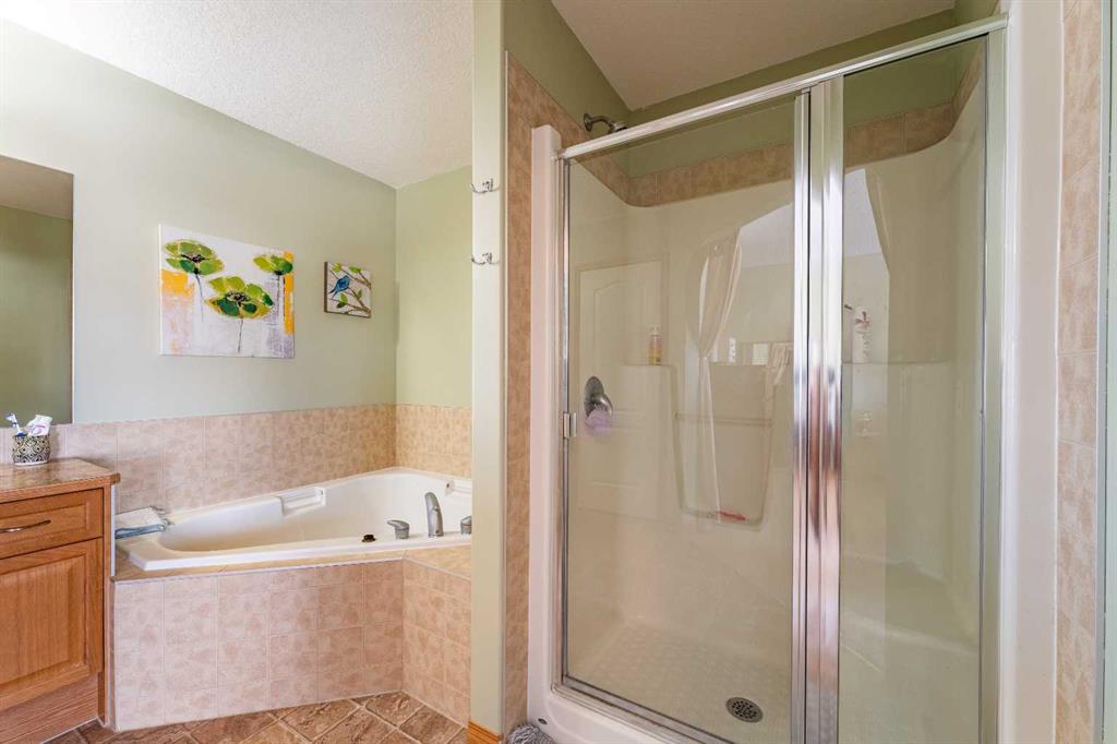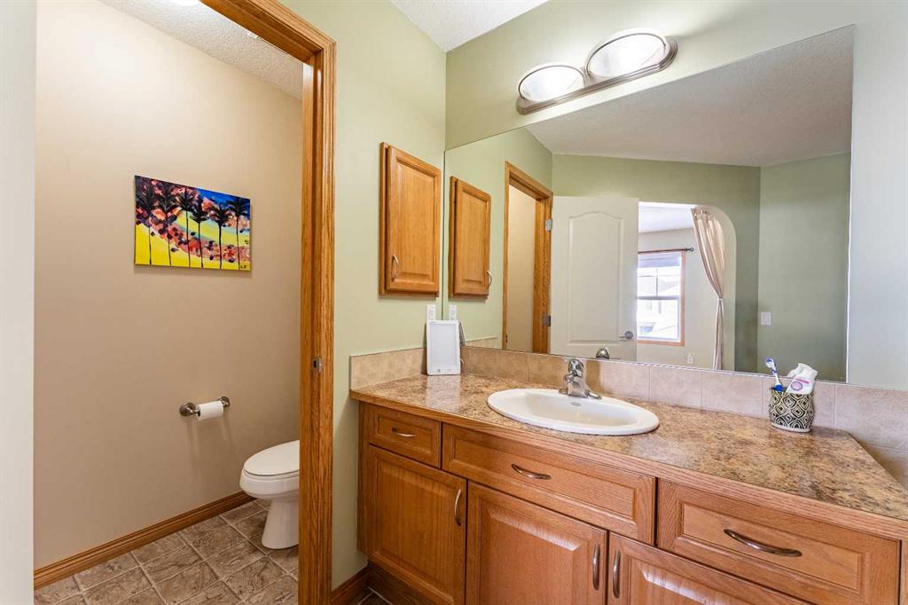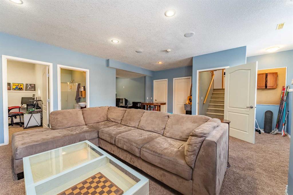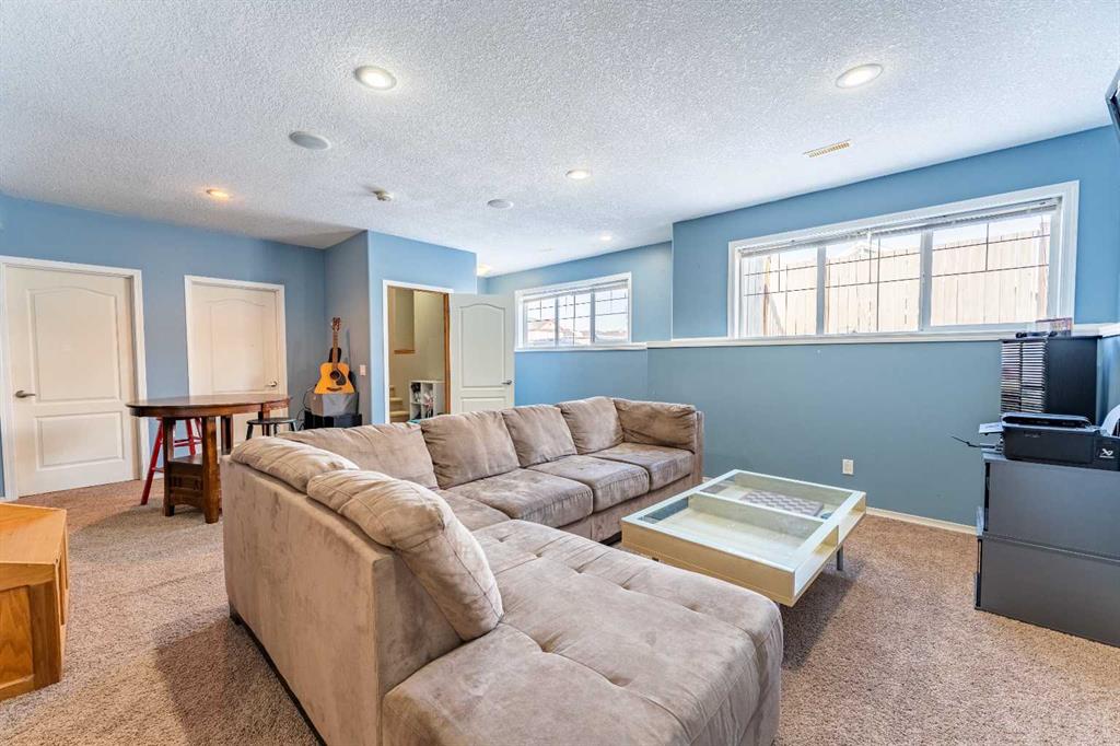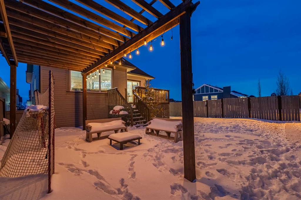Welcome to this beautiful custom bi-level home located on a desirable corner lot in the family-friendly community of Sagewood in Airdrie. With a sunny south-facing backyard complete with a charming pergola, this home offers the perfect setting for relaxing or entertaining outdoors. The spacious front entrance greets you with soaring ceilings, creating a bright and inviting first impression. The thoughtfully designed main floor features three bedrooms and two full bathrooms, including a generous primary suite that easily accommodates a king-sized bed, along with a walk-in closet and a luxurious 4-piece ensuite showcasing a separate corner soaker tub and standalone shower. Just a few steps down are two well-sized secondary bedrooms and an additional 4-piece bath. The open-concept kitchen, dining, and living areas are ideal for modern family living, highlighted by a large kitchen island with breakfast bar, a corner gas fireplace in the living room, and a dining space spacious enough for everyday meals or hosting guests. Abundant windows throughout the main floor flood the home with natural light. The fully developed basement adds even more functional space with a fourth bedroom, full bathroom, expansive rec room, dedicated games area, laundry room, and ample storage including additional space under the stairs. Completing this exceptional property is a double attached garage. This well-designed home truly offers the right space in all the right places for comfortable family living.