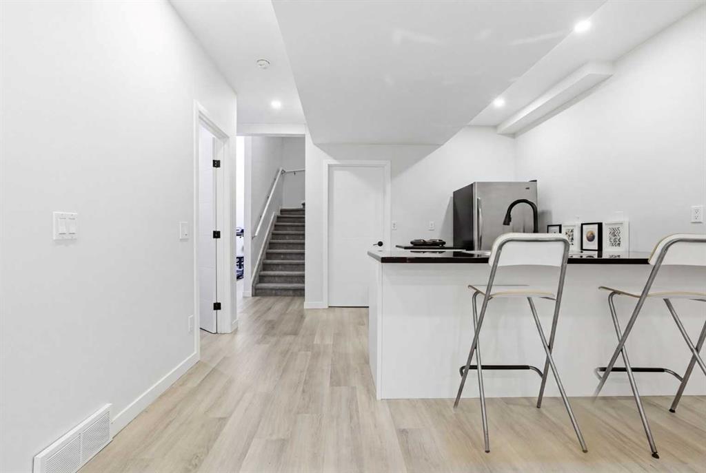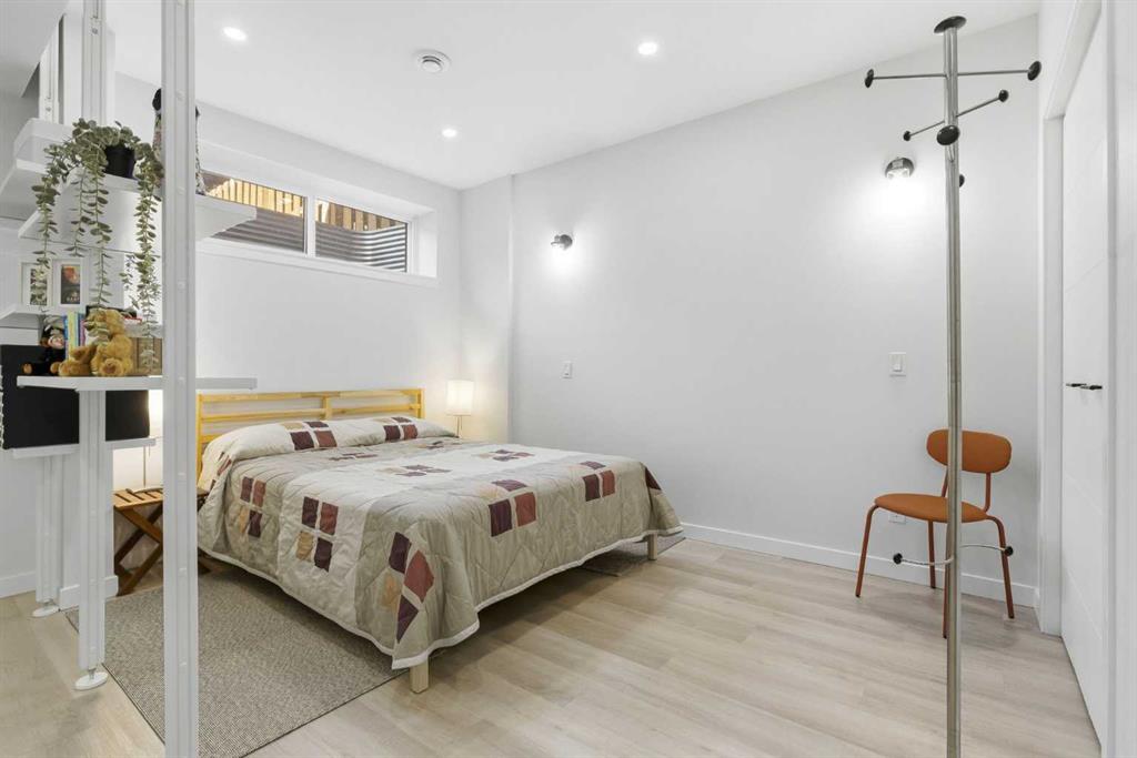 And then there’s the lower level, where this home truly separates itself from the rest. The fully finished basement features its own separate entrance, a bedroom, and an additional dedicated sleeping area, currently partitioned (not fully enclosed), that would be perfect as a home office with a Murphy bed or easily converted into a fourth bedroom. It also includes a beautifully finished bathroom with a full-tile glass shower that rivals the upstairs finishes, along with a kitchenette already in place—ideal for extended family, guests, or future income potential.