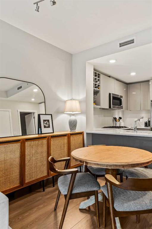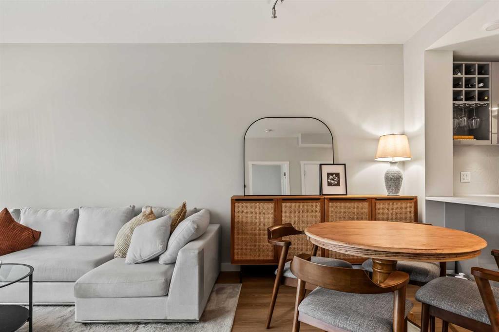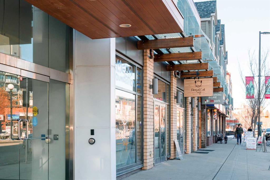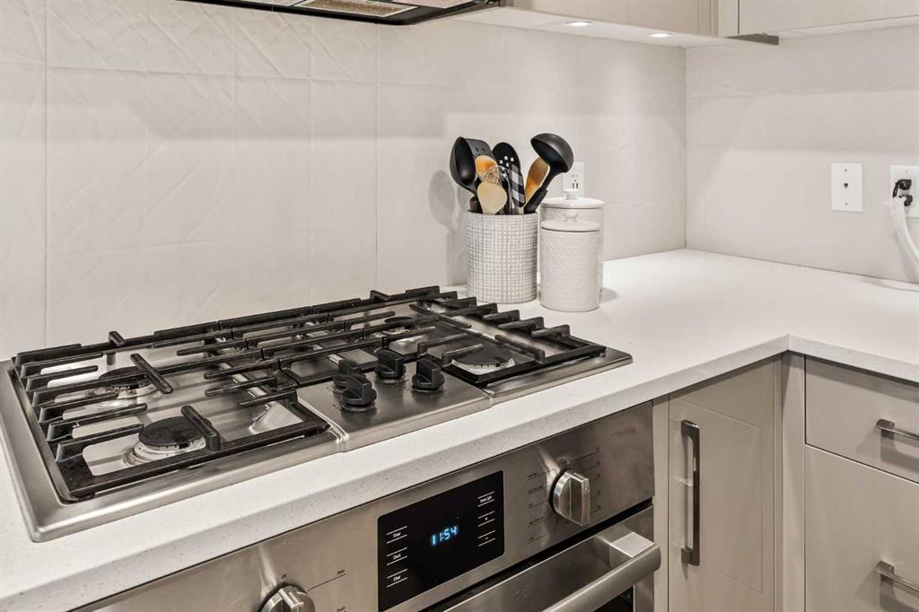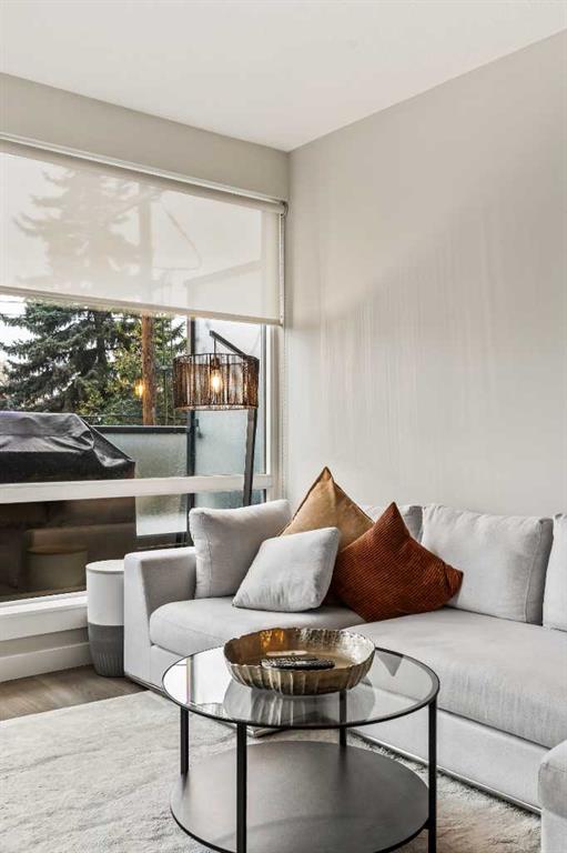 For the discerning buyer – Proudly presenting contemporary luxury with an enviable inner-city address. Situated on the quiet West side of the concrete Kensington building, this sophisticated second floor Hillhurst sanctuary offers over 600 SF of curated living space. Gleaming floors, refined quartz countertops, neutral palette, and a wealth of custom built-in storage delivers understated elegance. The stylish kitchen is a model of thoughtful design and modern function boasting extensive cabinetry with built-in wine rack, Fisher Paykel stainless steel appliances including a gas stove top, quartz countertops, a peninsula with seating for four, and an upgraded custom storage cabinet by California Closets. An impressive bank of floor to ceiling windows allows natural light to flood this stunning boutique CORNER unit where the designated dining area and pretty living room offers a comfortable space for both relaxing and entertaining friends. The sun-drenched owner’s suite easily accommodates a queen-size bed and highlights expansive windows while a custom California Closet system brings organization to the room. A spa-inspired ensuite offers a retreat at the end of the day featuring a large vanity with quartz countertop, sperate glass shower and luxurious soaker tub. Completing this exceptional unit is convenient in-suite laundry and a storage room with a FIFTH highly upgraded California Closet custom built-in. Other notable highlights of this exclusive residence include 1) air conditioning, 2) titled parking, 3) separate storage unit, 4) coveted West-facing balcony, and 5) a PET FRIENDLY building. The Kensington is a special blend of elegance and practicality in the true heart of Kensington with the additional conveniences of bike storage rooms and a car wash bay. Situated minutes from downtown, SAIT, ACAD, U of C, Sunnyside LRT station, Foothills Medical Centre, Riley Park, the Bow River Pathway system and all the shops and amenities of vibrant Kensington Village, this rare property delivers it all – urban vitality, a serene retreat, and an extraordinary lifestyle.