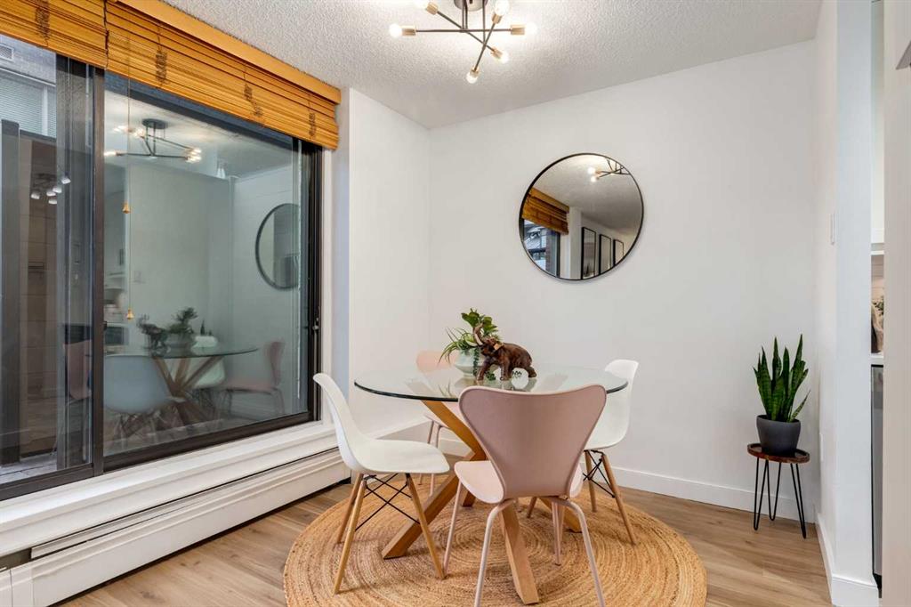 Welcome to The Sandpiper! This bright south facing 2 bedroom END UNIT has been updated throughout and features 2 balconies! From the updated kitchen (2021) with shaker style cabinets and stainless steel appliances to the newly installed engineered hardwood floors this home is not to be missed! The living room has a central floor to ceiling window with access to your large south facing covered balcony and from the dining room you have direct access to your 2nd private patio with over 400sqft and new compost decking, making it the perfect spot for entertaining – especially during stampede!! There are 2 generous sized bedrooms and renovated bath with walk-in shower. Insuite laundry room with storage and an assigned parking stall in the heated underground parkade complete this home. No gym membership needed, the Sandpiper has fitness facilities, sauna/steam room and bike storage. Centrally located and close to transit, restaurants and shops, this a great home for the 1st time buyer or investor.