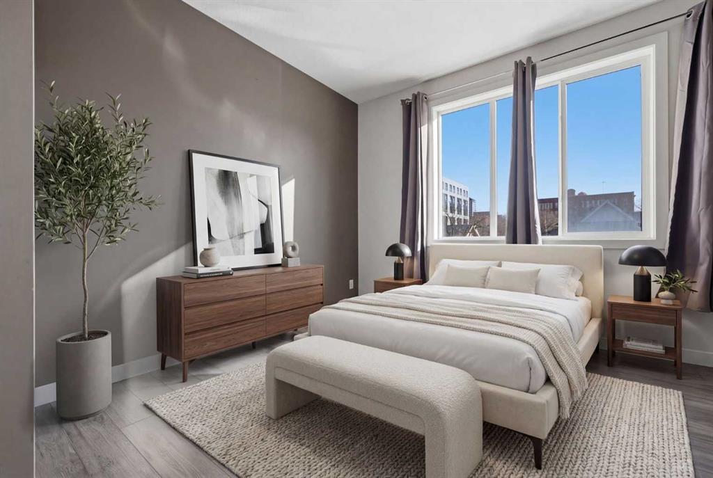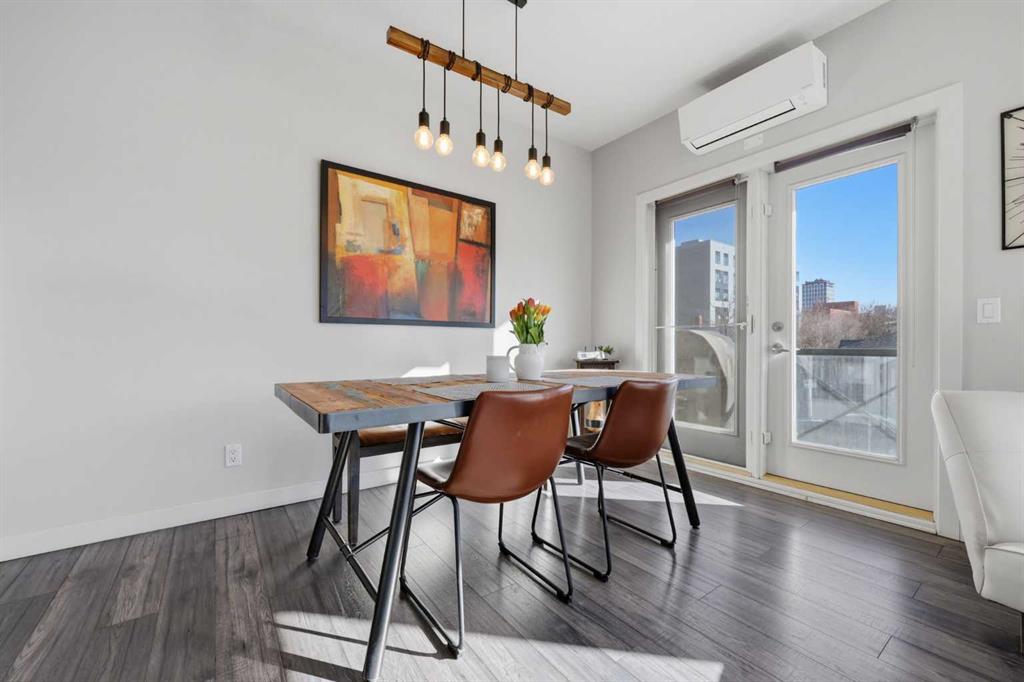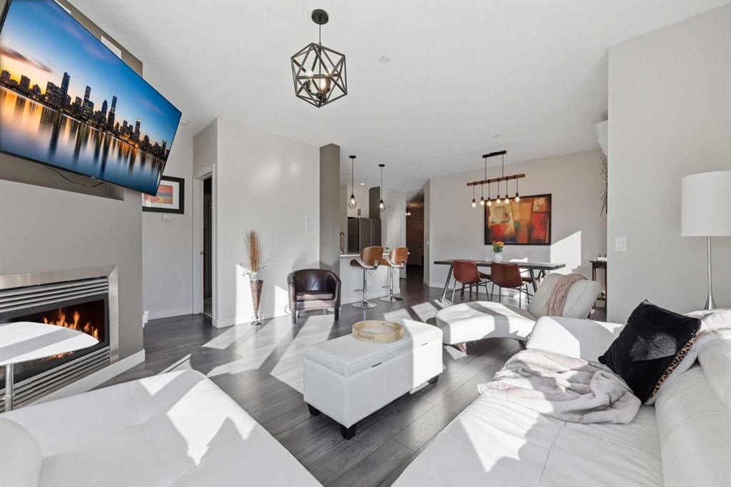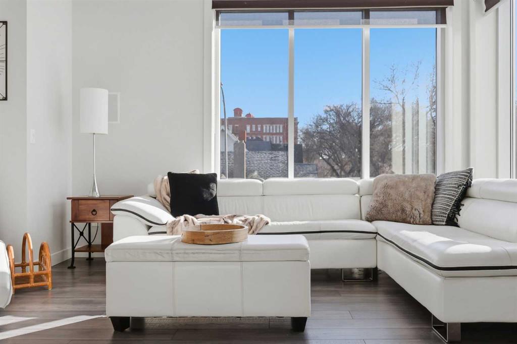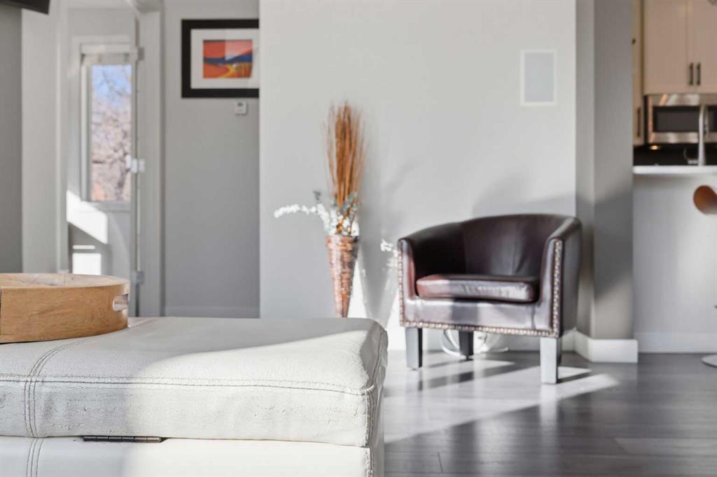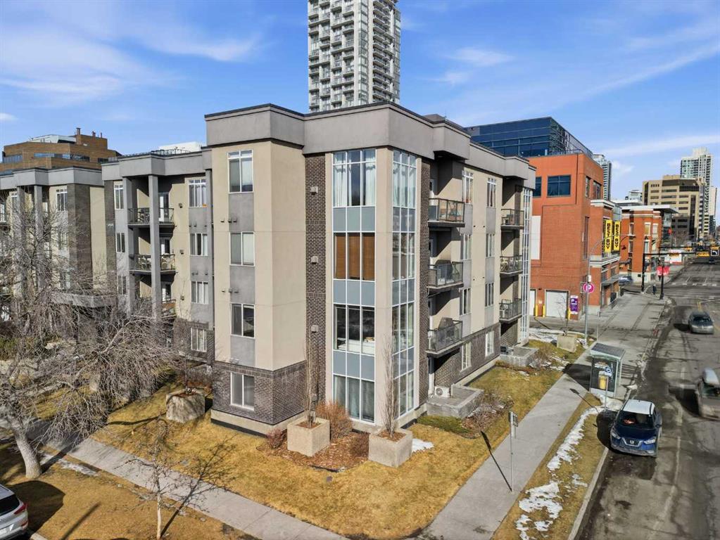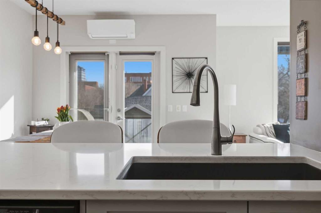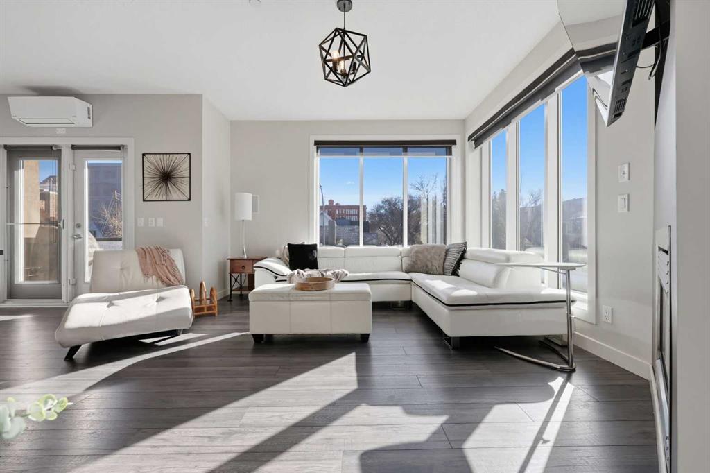 Welcome to #206, 910 18 Avenue SW. This stunning 2-bedroom, 2-bathroom corner unit is perfectly located just steps from the vibrant energy of 17th Avenue. With south-facing picture windows, this beautifully renovated condo is flooded with natural light, creating a warm and inviting atmosphere. Thoughtfully renovated just a few years ago, the home showcases modern, high-quality finishes throughout. The kitchen is a true highlight, featuring sleek quartz countertops, stainless steel appliances, and barstool seating, which creates the perfect space for casual dining, morning coffee, or entertaining guests. The open-concept design flows seamlessly into the dining and living areas, allowing the natural light from the large south-facing windows to fill the entire space. The dining area provides access to your private balcony, ideal for enjoying sunny afternoons or unwinding in the evening. Cozy up next to the fire in your spacious family room that features built-in speakers. Both bathrooms were refreshed during the renovation, offering a clean, contemporary feel that complements the home’s updated aesthetic. The primary bedroom provides a comfortable retreat, complete with a well-appointed ensuite, while the second bedroom and full bath offer flexibility for guests, a home office, or additional living space. Comfort is a priority with air conditioning throughout, ensuring the space remains cool and comfortable during Calgary’s warmer months. Perfect for professionals, downsizers, or investors, this property offers the ultimate lock-and-go lifestyle. Located just a few steps from some of Calgary’s best restaurants, cafés, boutiques, and downtown amenities along 17th Avenue, you’ll enjoy the ideal balance of urban vibrancy and stylish inner-city living. This is a rare opportunity to own a bright, renovated corner unit with titled underground parking in one of Calgary’s most desirable locations.