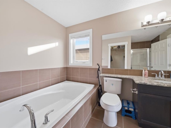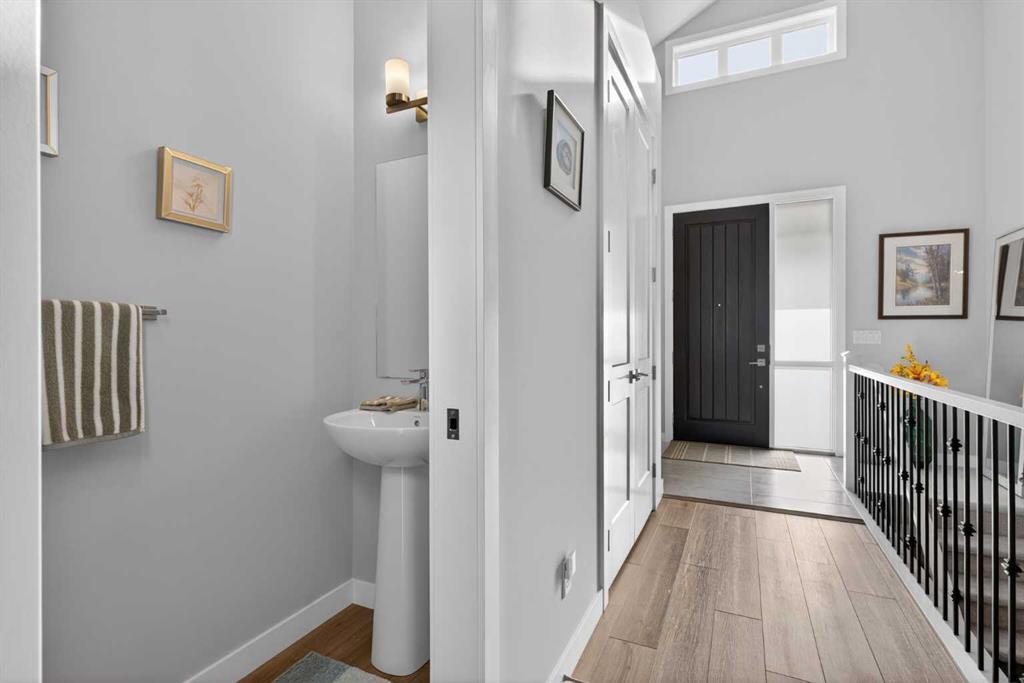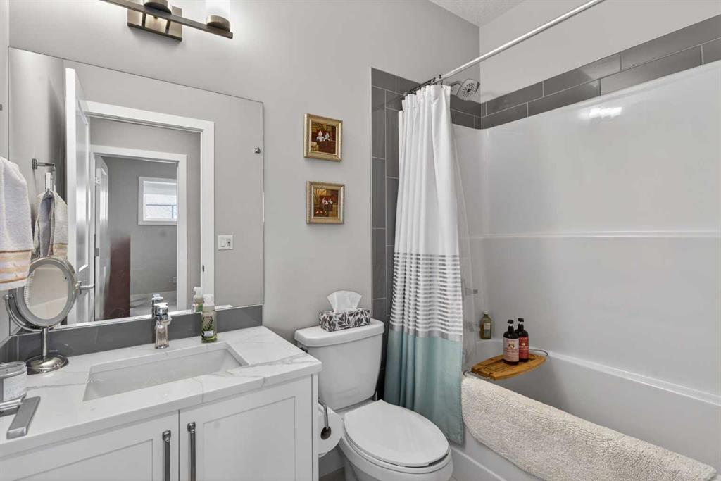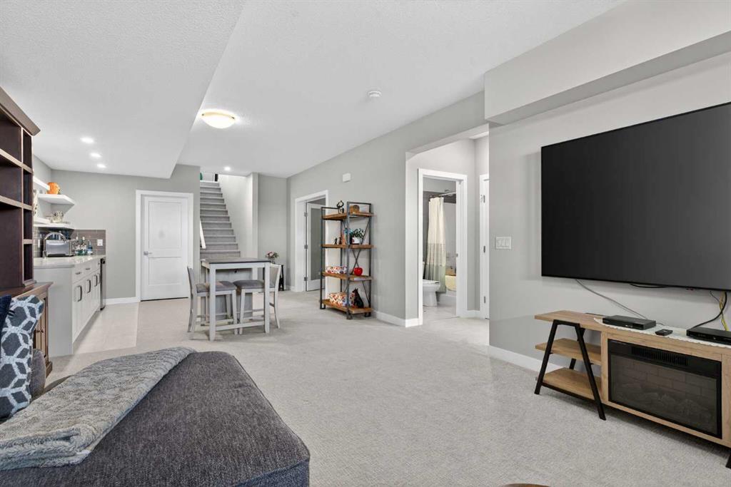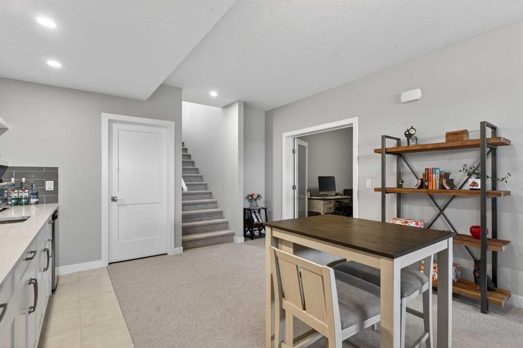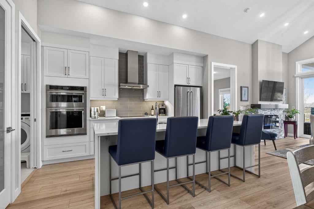 Rare opportunity for you here in ARRIVE AT CRESTMONT WEST in this beautifully upgraded villa in this exclusive location backing onto a stormwater pond & walking trails. Original owner of this mint condition bungalow, which offers 2 bedrooms & 2.5 bathrooms, upgraded luxury vinyl plank flooring & central air, oversized heated single garage & wonderful covered balcony where you can sit back, relax & enjoy the tranquil views. Showcased by expansive vaulted ceilings & bathed in natural light, you’ll simply adore the free-flowing design of the main floor with its living room with remote-controlled electric Dimplex fireplace with custom wood/stone mantle, airy open concept dining room & showpiece custom kitchen with quartz waterfall island & pantry, subway tile backsplash & KitchenAid stainless steel appliances including built-in convection oven & electric cooktop. The relaxing owners’ retreat boasts a huge walkthrough California Closet & stunning ensuite with double vanities, heated tile floors & oversized walk-in shower with floor-to-ceiling tile surround. The lower level – with oversized windows, is beautifully finished with a 2nd bedroom with walk-in closet, bathroom with heated tile floors & dynamite rec room with quartz-topped wet bar. Main floor laundry room with Whirlpool washer & dryer. Additional upgrades include Kinetico water softener & roughed-in radon system, HardieBoard & stone exterior, natural gas line for your BBQ on the balcony, custom window blinds, quartz counters in the bathrooms & kitchen, welcoming front verandah, underground sprinklers & tankless water system. Prime location in this exclusive estate community just steps to Crestmont Village Shoppes, only a short few minutes to Crestmont Hall & easy access to the TransCanada Highway & Stoney Trail ring road to take you to the Calgary Farmers’ Market West, Canada Olympic Park & Calgary Climbing Centre, major retail centers & hospitals, downtown & beyond!
