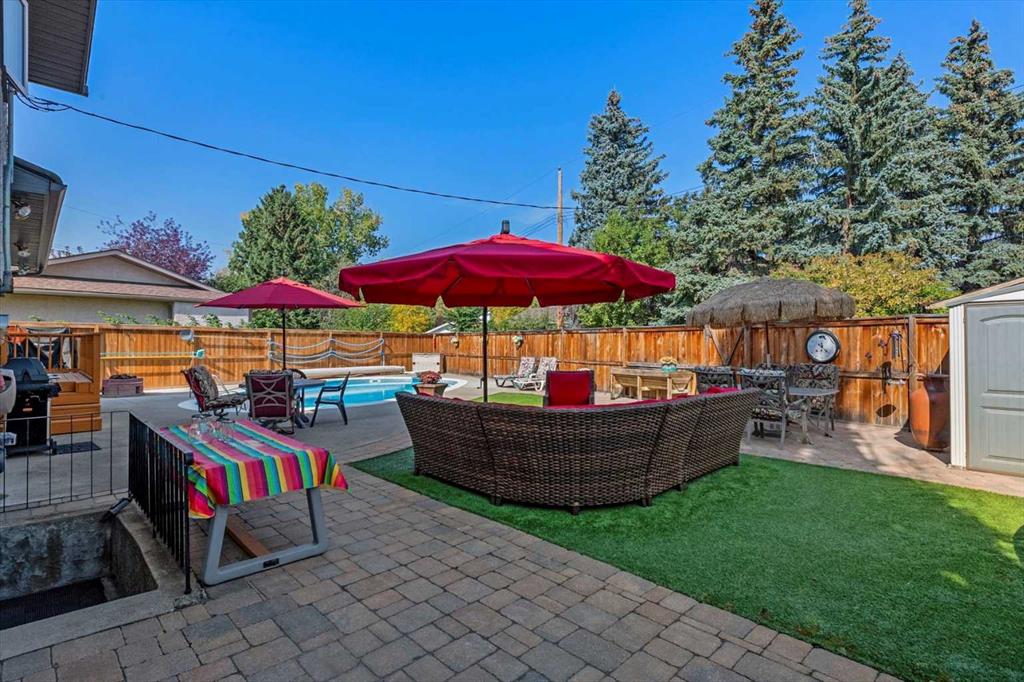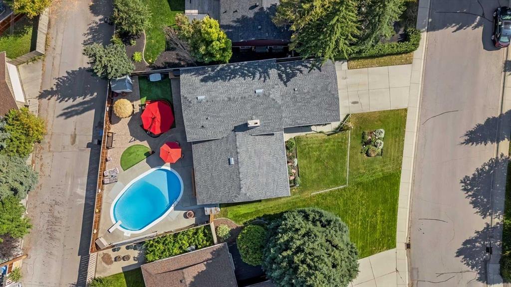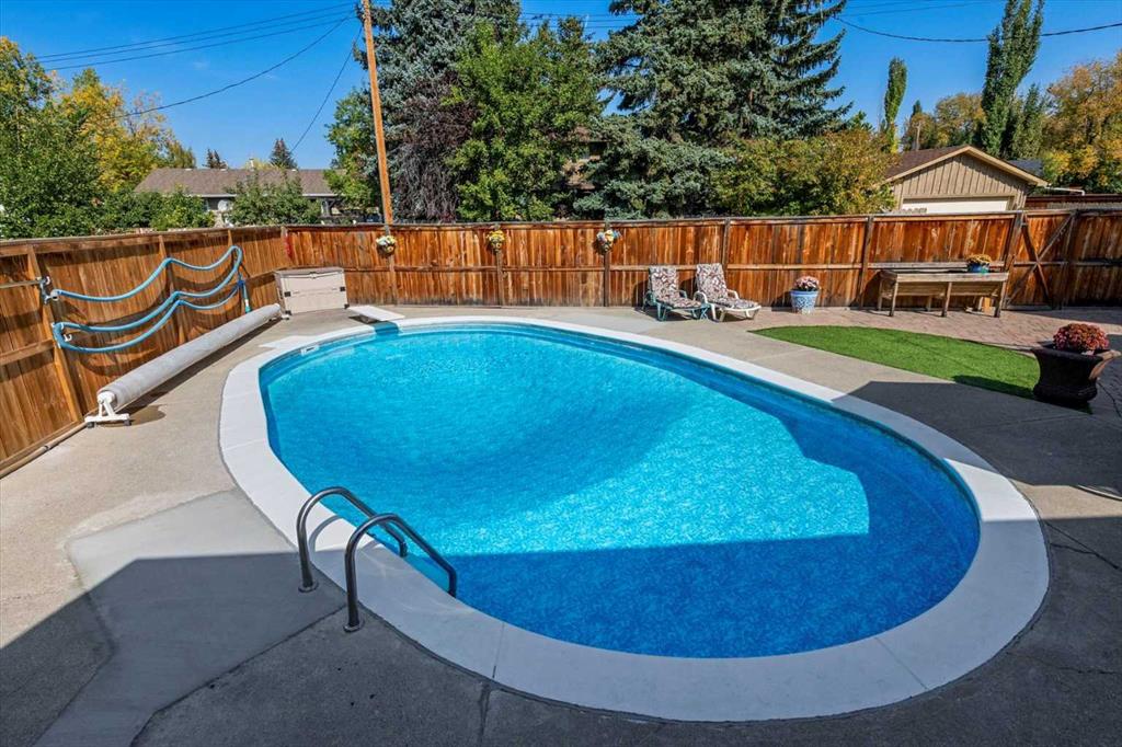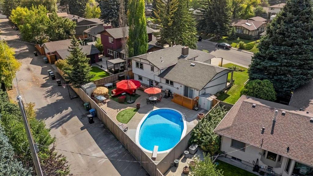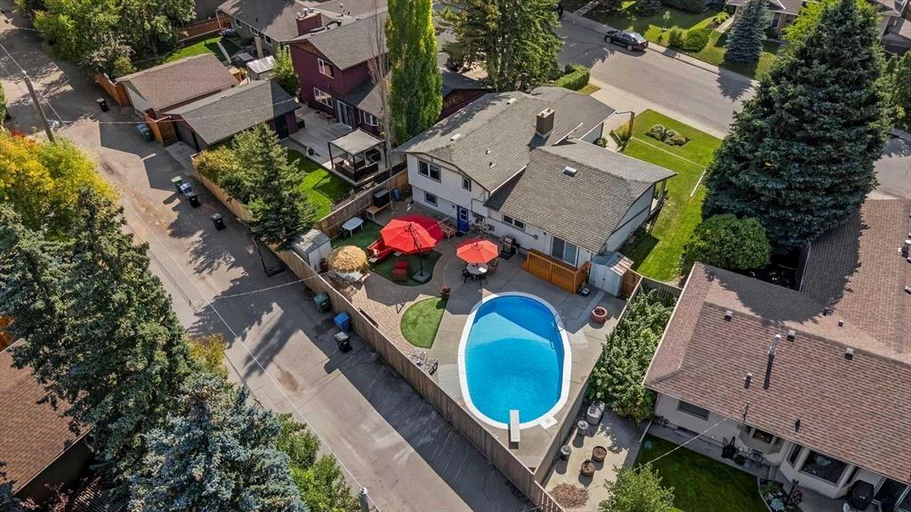 Welcome to your forever home, perfectly nestled on a quiet cul-de-sac in the heart of Lake Bonavista—one of Calgary’s most prestigious lake communities. This beautiful 4-level split home offers the ideal blend of space, comfort, and lifestyle, with 5 bedrooms, 4 bathrooms, and a backyard that feels like your own private resort. Step inside and you’ll immediately feel the warmth and charm of this inviting home. The bright, spacious living room is bathed in natural light thanks to new triple-pane windows and automated drapes, creating a cozy yet elegant atmosphere. It flows effortlessly into the dining room—perfect for hosting holidays or Sunday dinners—with a newer patio door that leads you out to the backyard. The kitchen is both functional and flexible, with room for a breakfast nook or extra cabinetry to suit your needs. Upstairs, the primary suite easily fits king-sized furniture and features his and hers closets plus a private ensuite. Two additional bedrooms and a full bathroom complete the upper level. On the lower level, you’ll find a warm and welcoming family room with custom built-ins and a brick wood-burning fireplace with gas starter—ideal for cozy nights in. There’s also a fourth bedroom, a full laundry room and convenient walkout access to the backyard. And what a backyard it is! Designed for both relaxation and entertaining, it features a heated inground pool, fire pit, raised garden boxes, and low-maintenance artificial grass—so you can spend less time on upkeep and more time enjoying the outdoors. The fully finished basement adds even more versatility with a fifth bedroom (great for a guest room, home office, or gym), a full bathroom, a large rec room, and more storage space. This home has been lovingly maintained and thoughtfully updated including sump pump & exterior paint touch ups (2025), triple-pane windows throughout, patio door, new soffits and fascia (2021), water tank, outdoor pool pump & filter (2020) and two new furnaces (2015) offering peace of mind for years to come. This exclusive, residents-only lake community offers unmatched year-round amenities—swimming, paddleboarding, kayaking, tennis, and beach volleyball in the summer, and ice skating, tobogganing, snowshoeing, and even ice fishing in the winter. The lake is stocked twice a year, and 52 acres of sparkling water are surrounded by 25 acres of lush green space and mature trees. Enjoy family-friendly events like movies in the park, Stampede BBQs, food truck nights, and seasonal festivals—all just steps from your door.Families will love being close to top-rated schools, including Lake Bonavista School, Andrew Sibbald, St. Boniface, St. Bonaventure, Sam Livingston, Nickle Jr. High and Dr. EP Scarlett High School. With quick access to Macleod Trail, Deerfoot, Stoney Trail, and even weekend getaways to the mountains, this location truly has it all. This is more than just a home- it’s a lifestyle and it’s ready for you to move in, add your personal updates and start making memories!