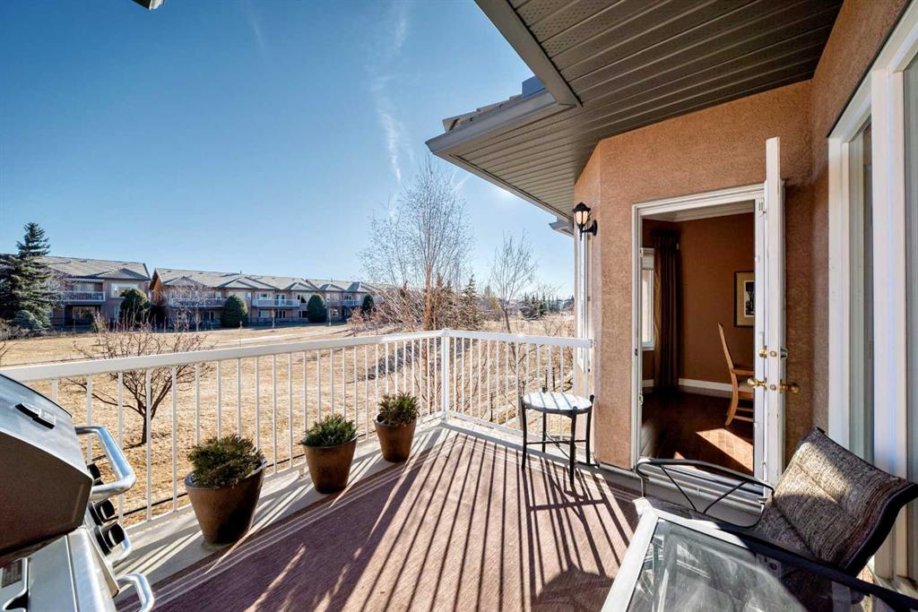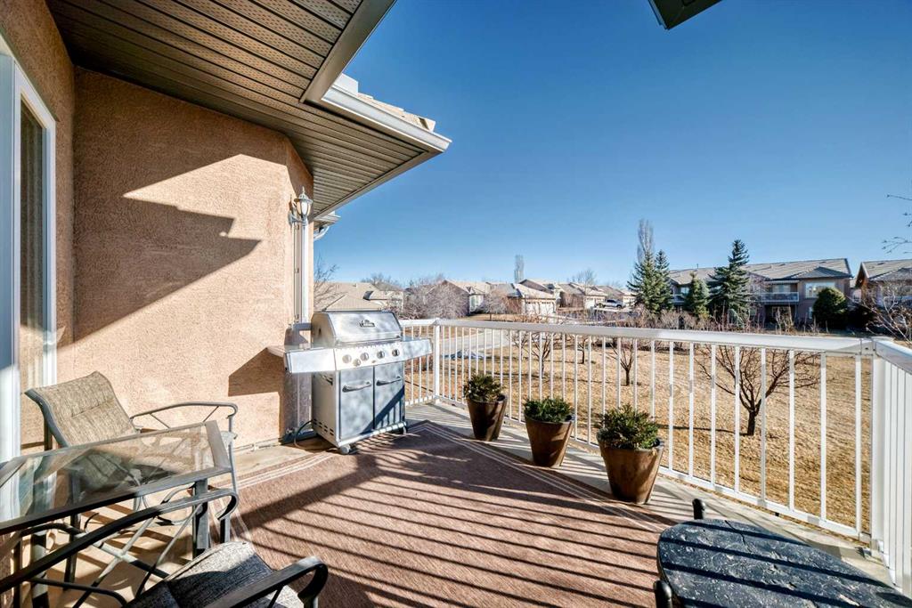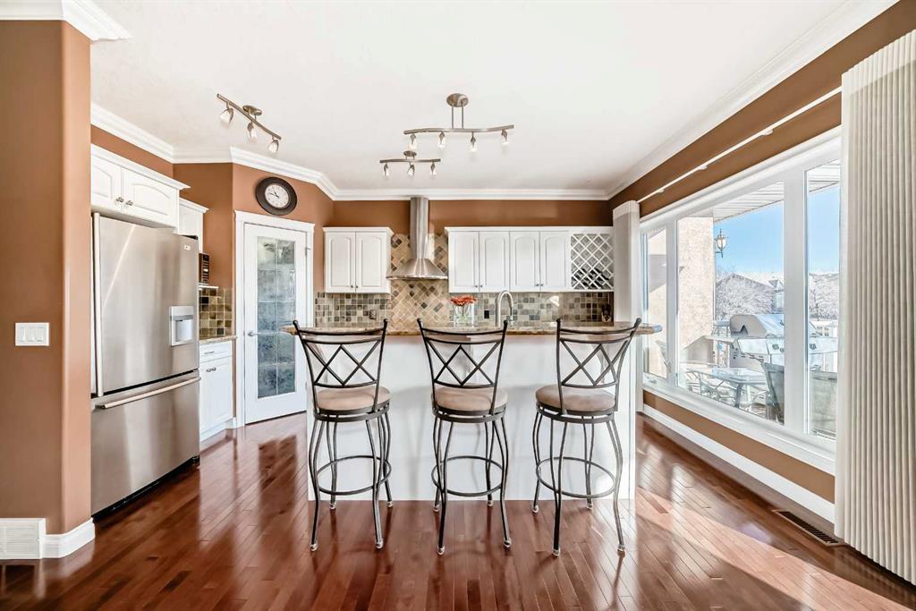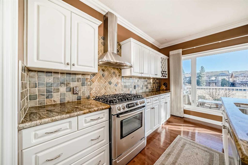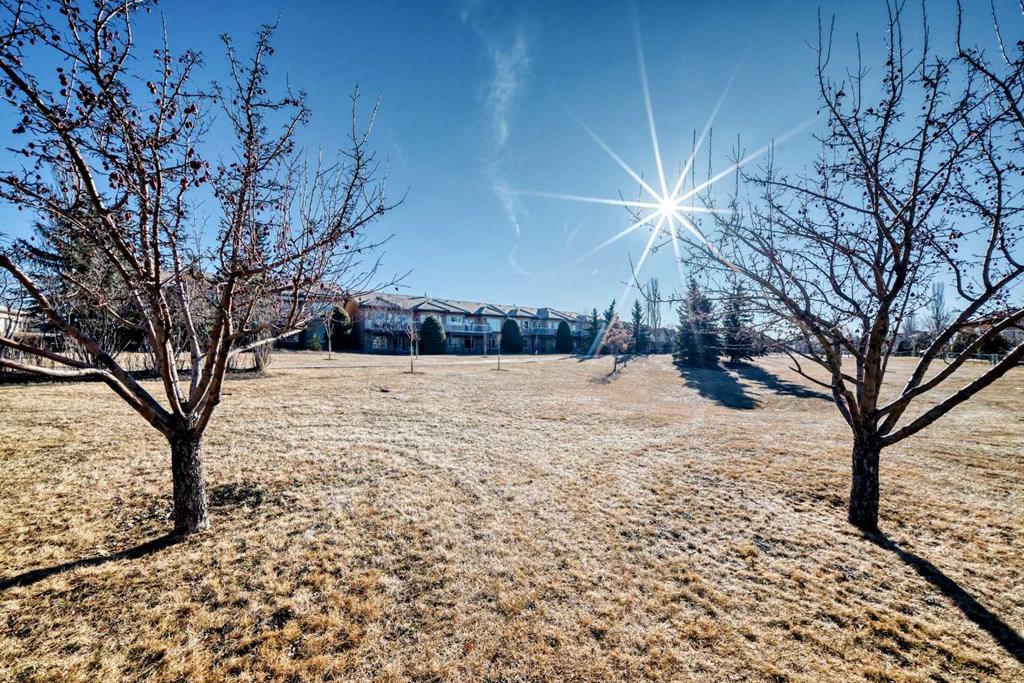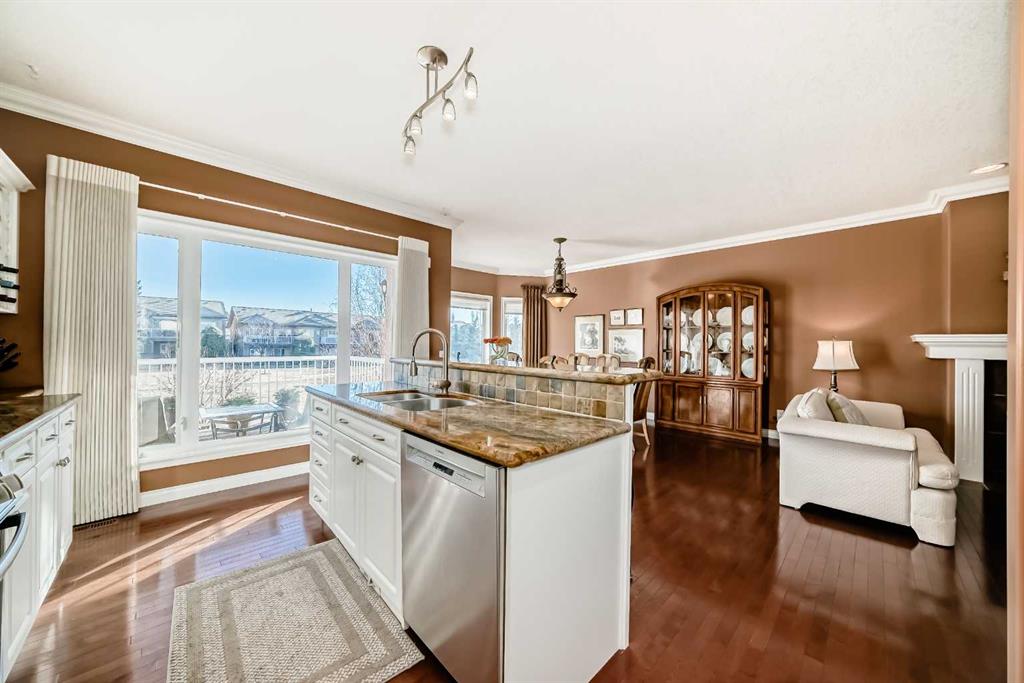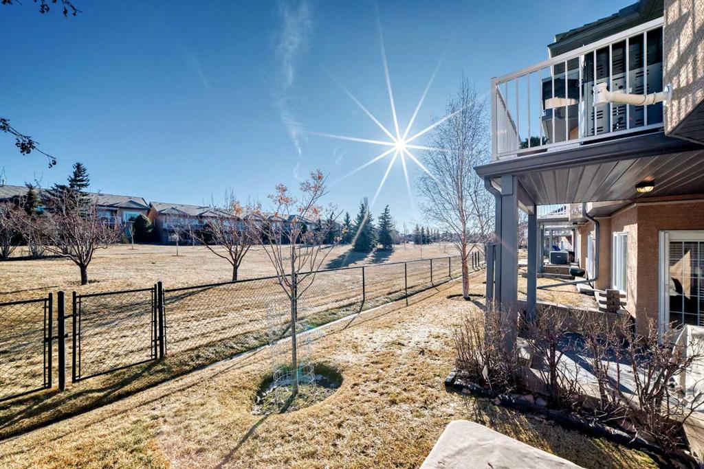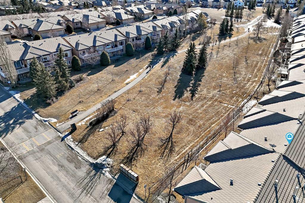 Every downsizer in South Calgary cries out: —-“If you ever find a REDONE, WALKOUT BUNGALOW, BACKING THE PARK in Shannon Estates Terrace — CALL US RIGHT AWAY, WE’LL BUY IT!” — Justifiably so….. because Hearthstone Construction built with such timeless QUALITY: concrete tile roofing, heated flooring in the walkout basements, stucco exteriors, large windows, DOUBLE ATTACHED GARAGES, rounded corners/art alcoves, flat ceilings & pot lighting. This once renovated, 3 Bedroom (1+2), 2.5 bath VILLA, has almost 2400 ft2 of developed living space and overlooks a large green space with path system. Empty Nesters will love the open floorplan loaded with hardwood floors & Island kitchen: granite countertops, diamond slate tile backsplash, stainless appliance package (Bosch Gas Range + Zephyr hoodfan) & corner pantry. Large living and dining area with hardwood floor, gas fireplace and private deck. Sunny west facing carpeted den with large arched window. Large primary bedroom with walk-in closets (facing park). Ensuite bath has his/her sinks, espresso cabinetry, tiled shower stall with glass, soft bevelled granite countertops and separate water closet. Laundry room off DOUBLE ATTACHED GARAGE with 2pc bath. Fabulous walkout basement with HEATED FLOORS, 2nd gas fireplace (mantle + tile surround), built-in entertainment & refreshment centre/wet bar. 2 large bedrooms down (one faces park)with 4pc and storage area. Recent upgrades include: Maytag Dryer and Freezer (2020), Garage Opener (2021), Daikin Furnace (2022), Bosch Dishwasher (2022), Garage Floor Epoxy (2023). This home has AIR CONDITIONING! 35+ age restriction in place. Open Houses this weekend, Feb 14th + 15th 2-4PM.
