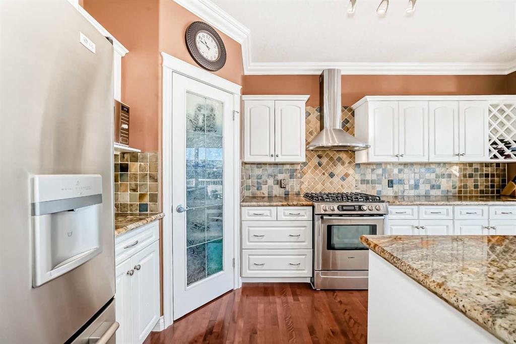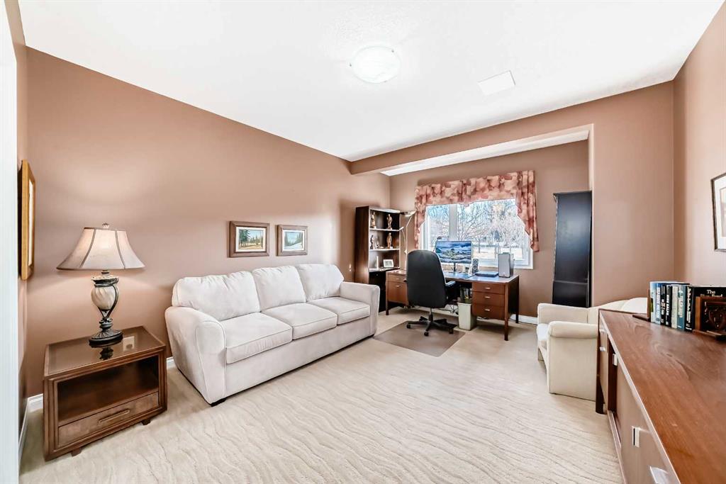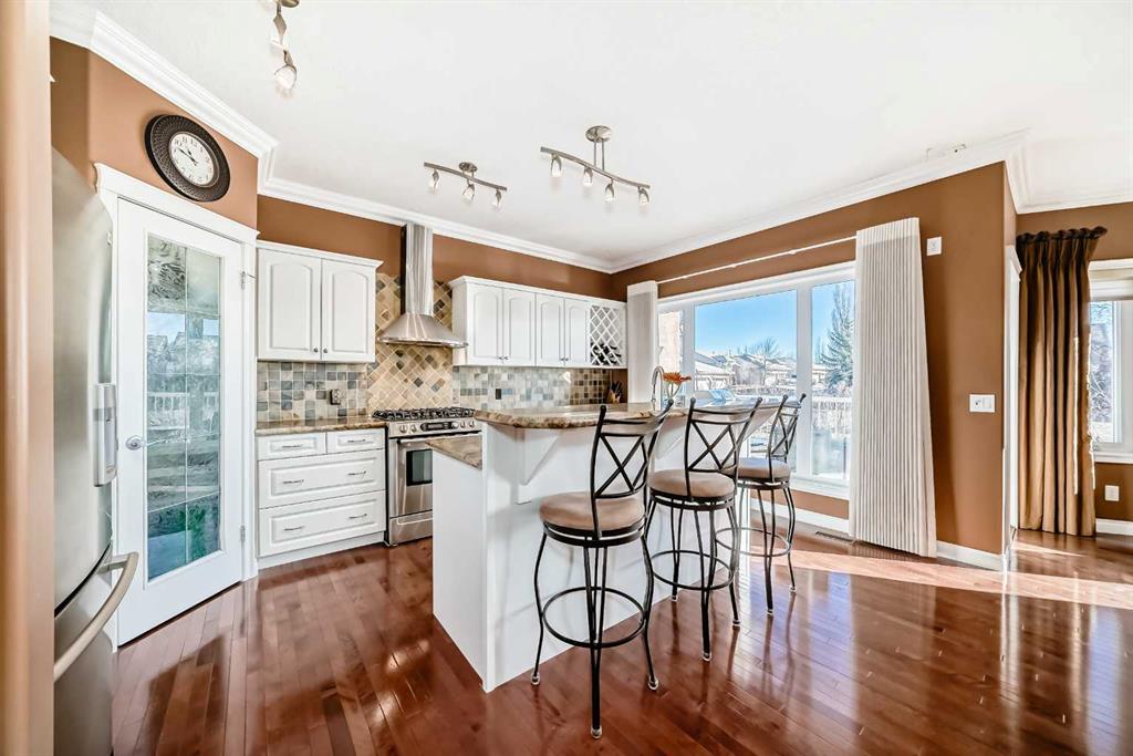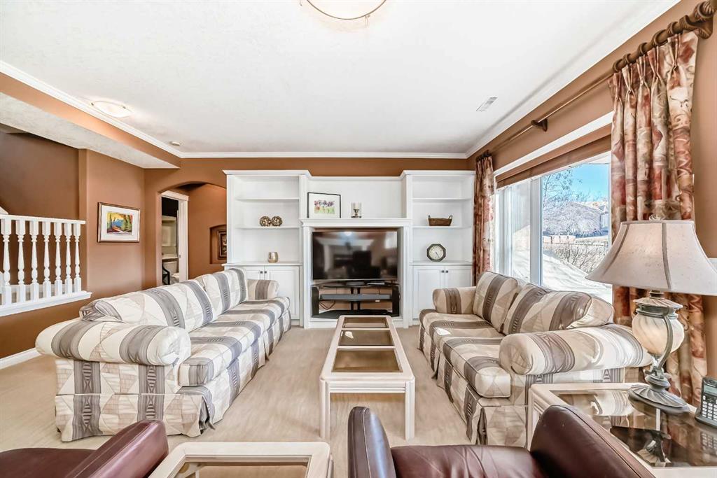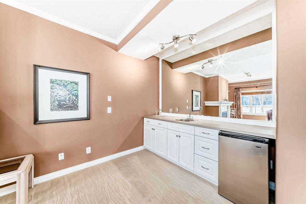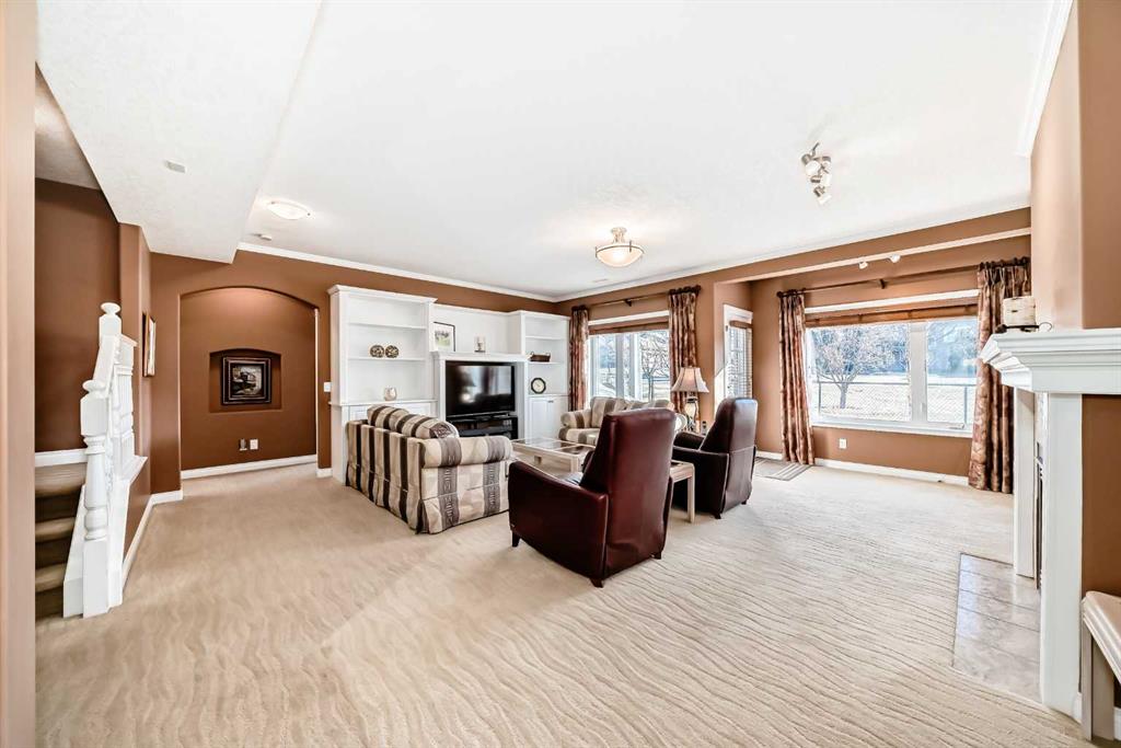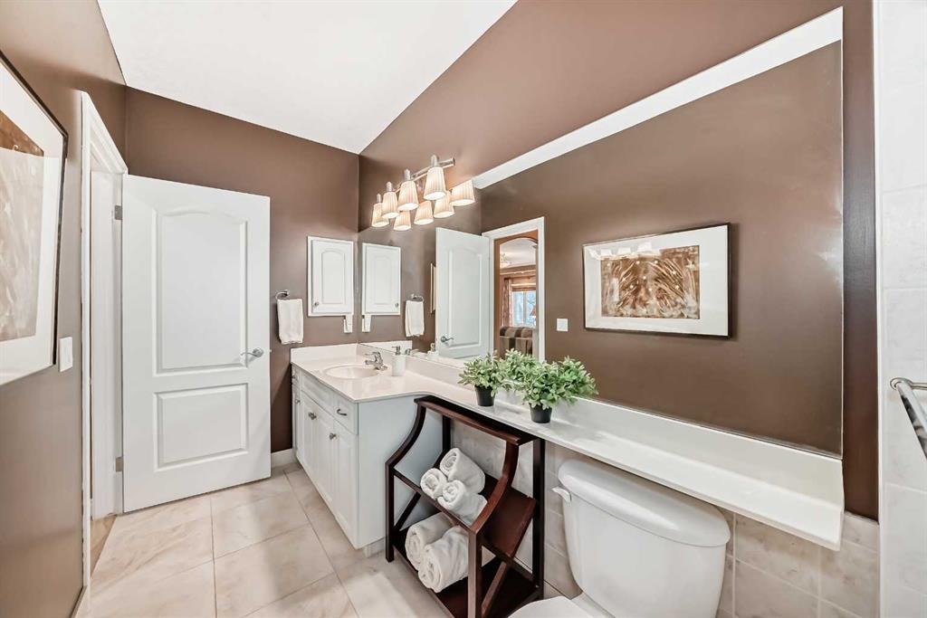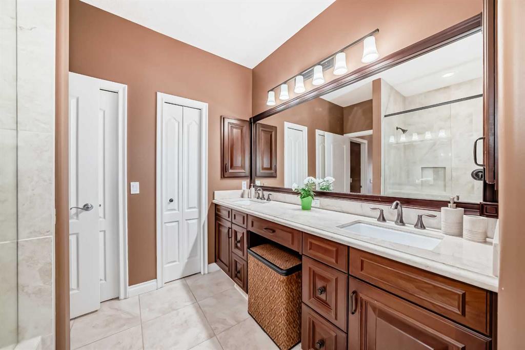 Every downsizer in South Calgary cries out: —-“If you ever find a REDONE, WALKOUT BUNGALOW, BACKING THE PARK in Shannon Estates Terrace — CALL US RIGHT AWAY, WE’LL BUY IT!” — Justifiably so….. because Hearthstone Construction built with such timeless QUALITY: concrete tile roofing, heated flooring in the walkout basements, stucco exteriors, large windows, DOUBLE ATTACHED GARAGES, rounded corners/art alcoves, flat ceilings & pot lighting. This once renovated, 3 Bedroom (1+2), 2.5 bath VILLA, has almost 2400 ft2 of developed living space and overlooks a large green space with path system. Empty Nesters will love the open floorplan loaded with hardwood floors & Island kitchen: granite countertops, diamond slate tile backsplash, stainless appliance package (Bosch Gas Range + Zephyr hoodfan) & corner pantry. Large living and dining area with hardwood floor, gas fireplace and private deck. Sunny west facing carpeted den with large arched window. Large primary bedroom with walk-in closets (facing park). Ensuite bath has his/her sinks, espresso cabinetry, tiled shower stall with glass, soft bevelled granite countertops and separate water closet. Laundry room off DOUBLE ATTACHED GARAGE with 2pc bath. Fabulous walkout basement with HEATED FLOORS, 2nd gas fireplace (mantle + tile surround), built-in entertainment & refreshment centre/wet bar. 2 large bedrooms down (one faces park)with 4pc and storage area. Recent upgrades include: Maytag Dryer and Freezer (2020), Garage Opener (2021), Daikin Furnace (2022), Bosch Dishwasher (2022), Garage Floor Epoxy (2023). This home has AIR CONDITIONING! 35+ age restriction in place. Open Houses this weekend, Feb 14th + 15th 2-4PM.