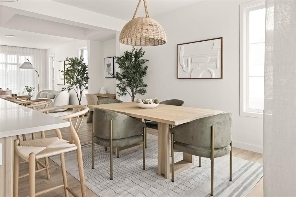 Brand new the ‘HUDSON’ detached home by ROHIT HOMES with unmatched design interiors and striking exteriors to create elevated living. Featuring 1,636 sq ft, 3 bed/2.5 bath, separate entrance & more. All Perfectly located In SE Calgary’s ‘Sora in Hotchkiss’, close to a park, featuring a pond, paths, easy access to major highways and more. Step inside to a sun soaked open floor plan with large windows throughout, and high 9ft ceilings leaving your home feel bright and inviting. Main floor connects the living, dining, and kitchen seamlessly creating a one of kind place to gather. With standout feature like coffered ceilings, elevating the elegance from the moment you walk in. The kitchen features large quartz island prep space with eating bar for stools, SS appliance package, designer cabinets, and lots of cabinet storage space. The main floor is complete with built in shelving, half bath, and mud room with closet. Upstairs, be enthralled with designer features like custom light fixtures. There are 3 bedrooms up, all good size. With the primary room being a great size, with 3 separate closet spaces – ensuring your items will be tidy all the time and great set up for shared space with significant other. The primary ensuite features: Walk in shower, vanity with quartz, and storage space. The upper level is complete with laundry room (washer dryer included!) as well as another full bath. Basement has separate entrance, and is awaiting your creativity. Landscaped lot, and a rear detached. concrete pad make this the perfect set up to move in and enjoy. At Rohit Homes, we know it’s not just about having a functional floor plan, it’s about having a space that you’re proud to show off. Each of our homes features a distinct look that is inspired by you – our customers. Built by a 4-time Home Builder of the Year with Peace-of-mind 1-2-5-10 year new home warranty. Unparalleled level to living awaits. Note: The listed price includes GST – The First-Time Home Buyers’ GST Rebate could save you up to $50,000 on a new home! You must be 18+, a Canadian citizen or permanent resident, and haven’t owned or lived in a home you or your spouse/common-law partner owned in the last four years. Terms and conditions are subject to the Government of Canada/CRA rules and guidelines. *Visit show home at 318 sora way SE Calgary mon-thurs 4-7pm, sat/sunday 2-5pm. Self guided tours available outside those times!