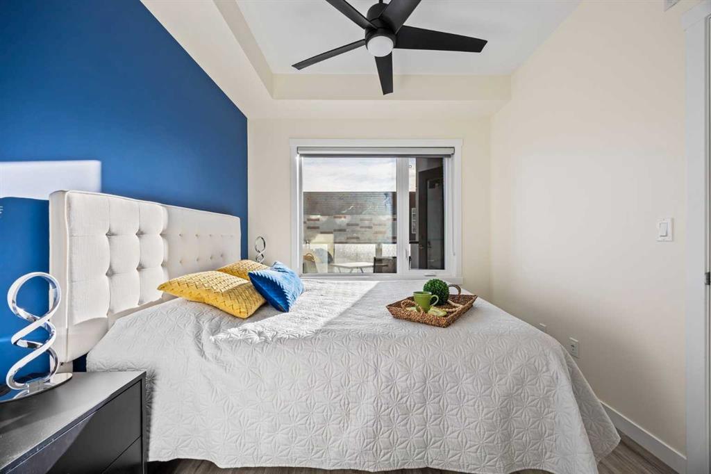 If you’ve been looking for a place that feels like home from the moment you walk in, this is it. Tucked into the heart of Sage Hill Quarter, this beautifully maintained 1-bedroom condo offers a perfect mix of style, function, and convenience, all in one of Calgary’s most desirable northwest communities. From the moment you step inside, you’ll notice how bright and welcoming the space feels. The vinyl plank flooring runs throughout the entire unit, giving it a clean, modern look that’s also super durable and easy to care for. The layout is smart and open, with a front coat closet for your everyday essentials and a spacious living area. The kitchen is a total showstopper with beautiful two-toned cabinetry, stainless steel appliances, plenty of storage and a central island with seating for three. Just off the kitchen is a separate dining area, perfect for entertaining or setting up your ideal work-from-home nook. The south-facing living room is full of natural light and opens up to your private balcony with a BBQ gas line. The bedroom is a great size, with a walkthrough closet featuring built-in organizers on both sides, a game-changer for condo living! From there, you’ll access the sleek 3-piece bathroom with a stand-up shower and a vanity that includes extra drawers for added storage/functionality. This home is truly move-in ready and shows like new! You’ll also love the added convenience of in-suite laundry, a titled UNDERGROUND parking stall, and your own titled storage locker, everything you need for simple, stress-free living. What really sets this home apart is the unbeatable location. Living in Sage Hill Quarter means having everything you need just steps away including a Shoppers Drug Mart, Co-op grocery and gas, food spots, salons, clinics, gyms, and so much more. It’s all right here, within walking distance.