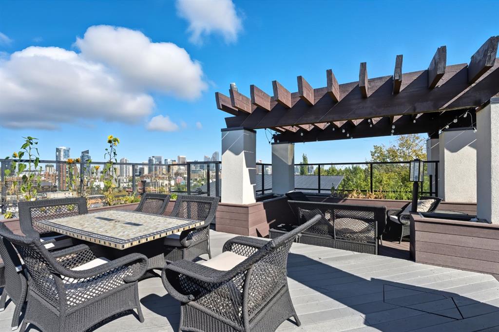 INCREDIBLE LOCATION!! This RENOVATED, GENEROUSLY SIZED, 2 BEDROOM, 2 BATHROOM condo is STEPS AWAY FROM 17th AVE, in the VERY DESIRABLE PROVIDENCE at BANKVIEW building. This condo has all the features you need; UNDERGROUND HEATED PARKING with optional EV CHARGER, IN-SUITE LAUNDRY, STORAGE ROOM, VISITOR PARKING, WEST-FACING Balcony, and a HUGE ROOF-TOP PATIO with SPECTACULAR DOWNTOWN VIEWS!! Renovations include; NEW FLOORING, NEW COUNTERTOPS, AND FRESHLY UPDATED BATHROOMS!