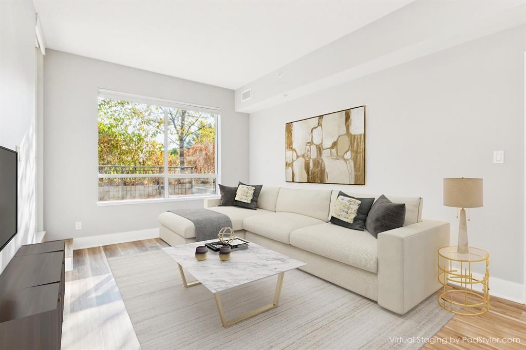 Tired of the Concrete Jungle? Experience urban living at its finest in this exceptional courtyard-level condo with direct access to a stunning garden sanctuary. This inviting 2 bedroom, 2 bathroom home offers the perfect blend of city convenience and serene tranquility. Imagine hosting al fresco dinners with friends, tending to your favourite plants, or simply unwinding with a good book in your peaceful outdoor oasis. Inside, you’ll discover a thoughtfully designed open-concept layout featuring soaring 9-foot ceilings, elegant quartz countertops, and a gourmet kitchen equipped with top-of-the-line appliances, including a gas cooktop and built-in oven. Retreat to your primary bedroom – a spacious sanctuary with ample room for a king-sized bed, a well-appointed 4-piece ensuite, and an abundance of closet space. The generously sized second bedroom offers versatility as a guest suite or comfortable home office. Rest easy knowing your vehicle is secure in the titled underground parking stall, protected from the elements year-round. Plus, enjoy the convenience of a separate storage unit to keep your belongings organized and easily accessible. This pet-friendly building offers fantastic amenities including a fitness room, party room, bike storage, and community gardens. Immerse yourself in Bridgeland’s vibrant cultural scene with easy access to shops, cafes, and restaurants. And when you need a dose of nature, escape to nearby parks, the Bow River pathway, or your own private courtyard patio. More than just a condo, this is an urban sanctuary where you can embrace the best of both worlds. Live effortlessly, work efficiently, and recharge in nature – all from this exceptional Bridgeland address. Be sure to check out the virtual tour!
