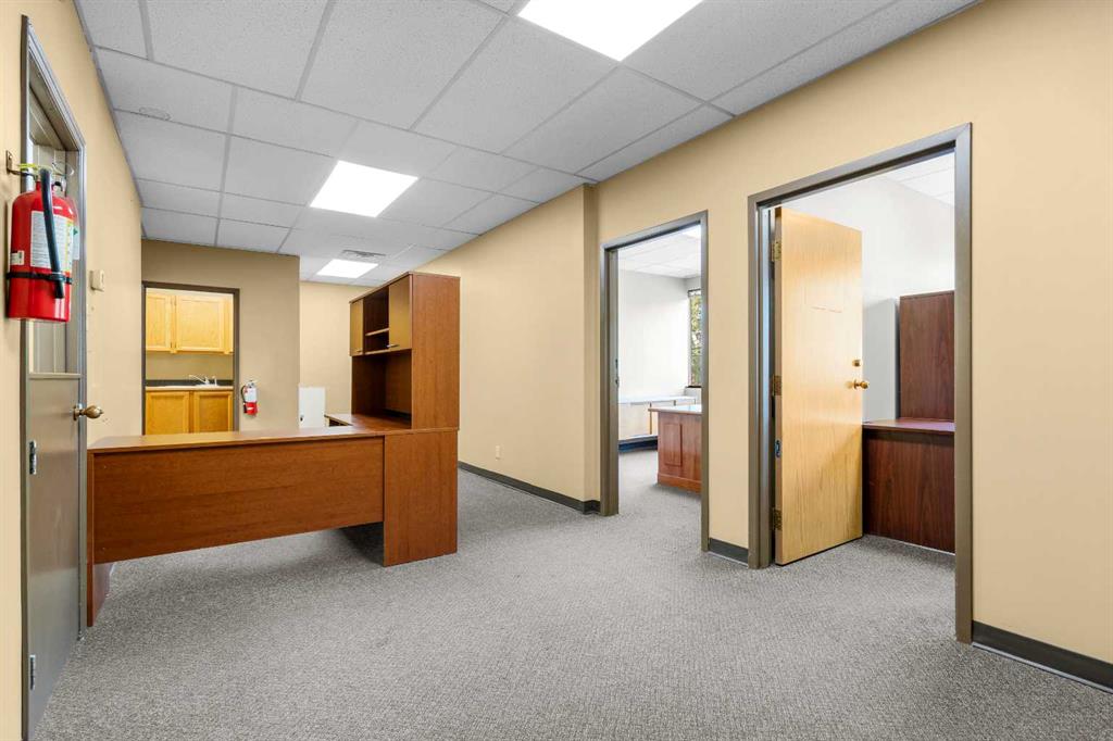 Looking for great office space in downtown Okotoks then look no further. The front of the building is on Elizabeth street and there is a parking lot belonging to the building too – great for your customers. The building has an elevator so no concerns about access to the 2nd floor. There are shared washrooms just steps away from the space. The space includes a reception area, a meeting room, kichenette area, a large central space and 4 offices. The space is a total of 1297 sq ft with rent being $15 per sq ft + op costs of $13.38 per sq ft (heat, water and electric are included). This is a great space with lots of natural light. A great opportunity in downtown Okotoks! See 3D tour.