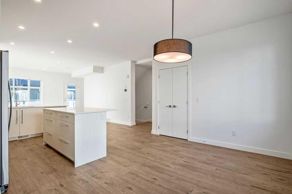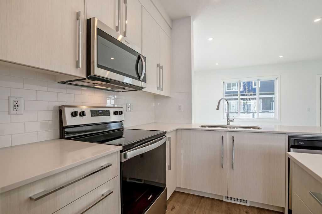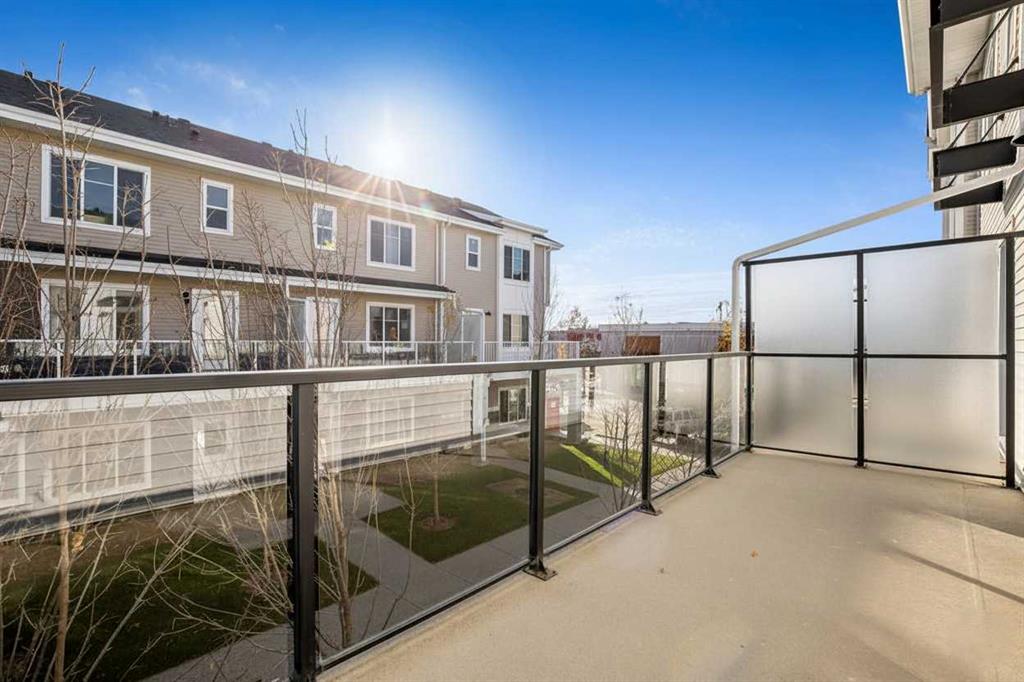 Discover refined living in this beautifully appointed townhome, ideally located in the vibrant community of Cornerstone. This 4-bedroom, 2.5-bath property combines thoughtful design with modern finishes throughout. The upper floor features a peaceful primary retreat complete with a walk-in closet and a spa-like 4-piece ensuite. Two additional bedrooms and a contemporary 4-piece main bath provide comfortable space for family or guests. The main level is highlighted by a gourmet kitchen outfitted with quartz countertops, stainless steel appliances, and ample cabinetry perfect for those who love to cook and entertain. Sun-filled dining and living areas create an inviting atmosphere, flowing seamlessly to a generous balcony ideal for BBQs or relaxing outdoors. A versatile main-floor bedroom doubles nicely as a home office or cozy den, while upper-floor laundry and a double attached garage add everyday convenience. With parks, pathways, schools, shopping, and quick access to Stoney Trail just moments away, this home offers both comfort and connectivity. Contact your preferred Realtor to book a private showing today!