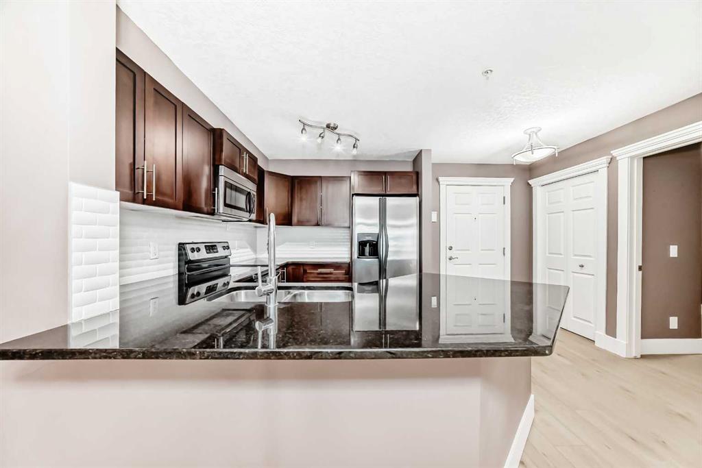 Welcome to 207, 500 Rocky Vista Gardens NW — a bright and inviting 1-bedroom + den condo in desirable Rocky Ridge. This well-appointed unit features brand new laminate flooring, an open-concept layout, and stunning mountain views from your private balcony.