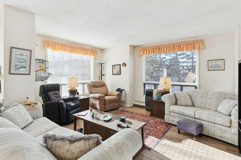 Opportunity knocks at #207. This popular floor plan is a rare find with windows facing south, west and north, is only found on the four corners of the building! Located at the end of the hallway allowing for lots of privacy with only one neighboring common wall. Three exterior walls have windows bringing in an abundance of natural light. The spacious 963 sqft floor plan features a large living room, fully size dining area, open kitchen with upgraded cabinets, primary bedroom with 2 pc ensuite, 2nd bedroom which can be used as an office or den, 4 pc bathroom and a storage room. Full size sliding doors open onto a large south exposure balcony, perfect for a BBQ and additional seasonal storage. Titled underground parking stall #36. Long-term tenants (23 years) would like to stay if possible, currently a month-to-month tenancy. Dorchester Square is a concrete building with post tension cables – maintenance and engineer’s reports available. Excellent building amenities: located on the same floor as 207 is a social/games room with billiard table and a large well maintained common laundry room. The main floor has a fully equipped gym, women’s sauna and a racquet court. Well managed building with on-site office and manager. Pet restrictions (cats ok, no dogs) and no short term rentals. Many long-time owners in the building which give the building a feeling of community.