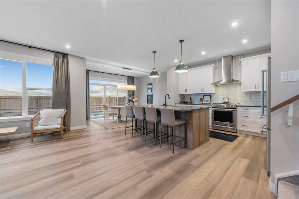 ** SHOW HOME ** Welcome home to The Lancaster by Broadview Homes; a lavish 2-storey home boasting 2,489 SqFt with 3 bedrooms, 2.5 bathrooms, a main level office, upper level bonus room and upper level laundry. This home is crafted with elegance, style and comfort in mind! Upgrades include a butler’s pantry, built-in custom shelving, wired for sound, wide plank flooring on the main level, plush carpet on the upper level, modern accent walls, a gas fireplace and more! The main level open floor plan is every entertainer’s dream. Step into your chef’s kitchen outfitted with stainless steel appliances, a gas stove, stone grey countertops and crisp white cabinetry! The large centre island is the perfect space for small meals and socializing while you cook. The dining room is expansive and is equipped for a large leafed dining table when you host and is paired with sliding glass doors that lead to a spacious backyard perfect for the warm summer months! The living room is centred with a floor to ceiling tiled accent wall with a gas fireplace. Off the kitchen is a walk-through butler’s pantry with additional cabinetry, a built-in microwave and a walk-in pantry. This connects to the mudroom off the interior garage door with custom built-in shelves for a clean and organized space! The main level office caters to a work-from-home lifestyle. The main level is complete with a 2pc bath. Upstairs holds 3 bedrooms, 2 5pc bathrooms, a bonus room and laundry. The primary bedroom is a private oasis; this room has views of the rolling prairies, an XL walk-in closet and private 5pc spa ensuite bath. The ensuite features a deep soaking tub, walk-in shower, double vanity and private washing closet. The primary bedroom has additional privacy as the bonus room separates this from bedrooms 2 & 3. Both bedrooms 2 & 3 are a spacious and share the main 5pc bath with a tub/shower combo and double vanity with storage below. The bonus room is the perfect space to unwind in the evenings with your family. The laundry located upstairs is every home owner’s dream as its near all the bedrooms! Downstairs, the unfinished basement is a blank canvas. With 9Ft ceilings and rough-in plumbing, the basement is ready for your personal touch. The front attached triple garage and driveway provides you with plenty of parking for your vehicle and seasonal toys! Hurry and book your showing at your brand new Broadview Home today!
