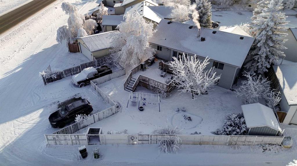 Looking for room to build the DREAM GARAGE…this property could be it! Located in a quiet cul de sac, this bi-level home features 6 bedrooms and 3 baths. Vaulted ceilings on the main level enhance the sense of space and light with large windows in the SW facing living room. The corner kitchen offers a load of cabinetry and STONE countertops for food prep, plus there is a corner pantry for extra storage. From the dining room, gain access to the HUGE rear deck and enjoy the countryside views! Too much fun in the sun ? Head inside where the central air cools things off! Continuing on the main level, the primary bedroom is complete with its own private ensuite for ultimate convenience. The lower level is fully developed with 3 bedrooms and a full bathroom enhanced by the bonus STEAM SHOWER. The lower level family room serves as the ultimate kids’ hangout or teen retreat and is fully adaptable to your family’s changing needs . This space accommodates the oversized sectional and is the perfect place for younger family members to claim as their own while leaving the main level free of clutter. The large storage area could alternately be used as a workshop/ hobby room. (This property has a few “hybrid” spaces to adapt to your individual needs). While its not quite a blank canvas, it is ready for a transformation with the perfect structural starting point for your dream home. This lot has the convenience of ALLEY ACCESS, providing extra flexibility for parking and future projects…think oversized garage and RV parking! The shingles were replaced within the last couple of years. This subdivision is close to parks, schools and recreational facilities. The Strathmore community has the conveniences of retail shopping, many schools (public/Catholic/Christian Academy/Rural Routes Academy), hospital, indoor pool and is always hosting many family events throughout the year. The commute is an easy 25 minutes to the city of Calgary. Call your Realtor® to view this opportunity and see its full potential!