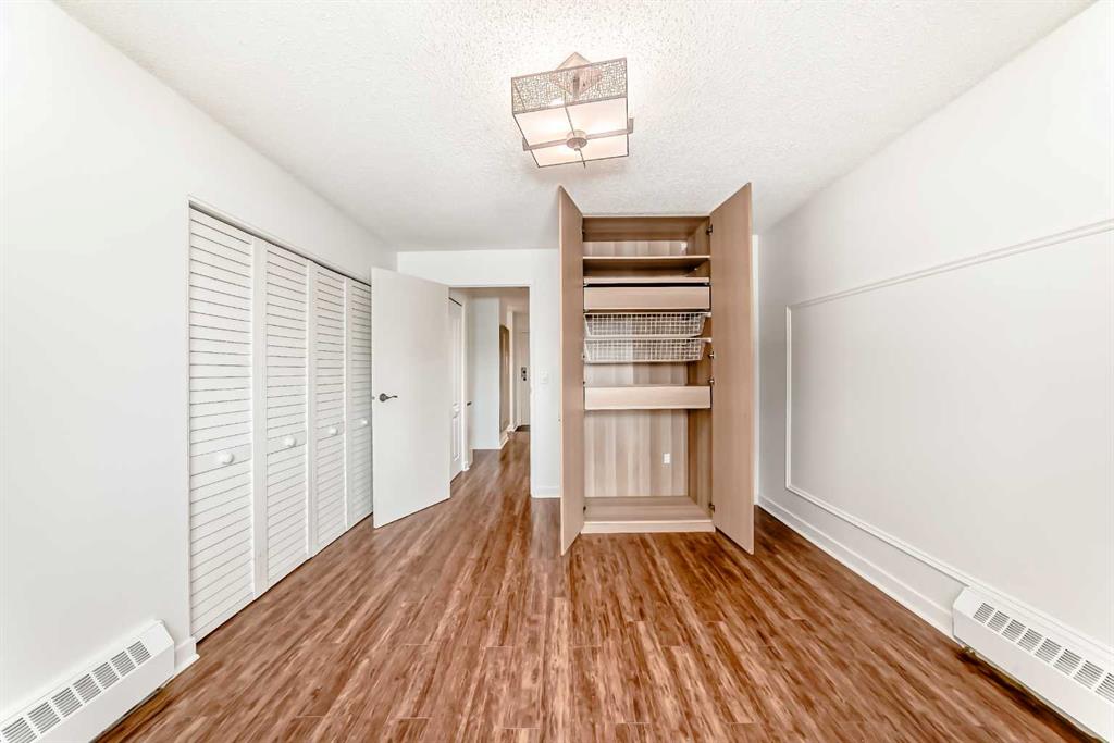 Welcome to this freshly updated, move-in-ready one-bedroom, one-bathroom apartment offering an excellent opportunity for first-time buyers or investors. This well-maintained, single-level unit has been thoughtfully updated to provide comfort, functionality, and affordability. The home has been freshly painted and features durable laminate flooring throughout. The kitchen is nicely upgraded with newer soft-close cabinets in modern gloss white fronts, under-cabinet lighting, and generous counter space with marble-style arborite countertops. A double pantry off the kitchen provides excellent additional storage, while a newer matte black pull-down faucet, newer dishwasher with a stainless-steel interior tub, and a new over-the-range microwave complete the space. The dining area features a stylish accent wall and a ceiling fan with dimmable lighting, creating a comfortable space for everyday meals. The living room opens onto a private balcony that offers a quiet outdoor retreat. The barbecue, table, and chairs are included, making the space ready to enjoy right away. The bedroom includes a double wall closet, along with an additional movable closet unit for extra storage. The bathroom also offers double medicine cabinets for added storage and convenience. In-suite laundry is provided with an LG front-load stacked washer and dryer. Heat and water are included in the condo fees, keeping monthly costs low. The poly-B plumbing has been removed for added peace of mind. The building offers quick elevator access to the second floor, an assigned exterior parking stall, and easy visitor parking located directly out front. Quick possession is available, making this an ideal option for buyers looking to move in without delay. The location is well suited for daily living and commuting, with nearby elementary and junior high schools, shopping, grocery stores, restaurants, and services close by along International Avenue and throughout the area. Downtown Calgary is approximately a 10 to 15 minute drive depending on traffic, with nearby transit routes and easy access to Deerfoot Trail, Memorial Drive, and 17 Avenue SE. This well-located, low-maintenance home is a smart and affordable way to enter the Calgary real estate market, offering practical upgrades, privacy, and excellent accessibility. Don’t delay, call today!