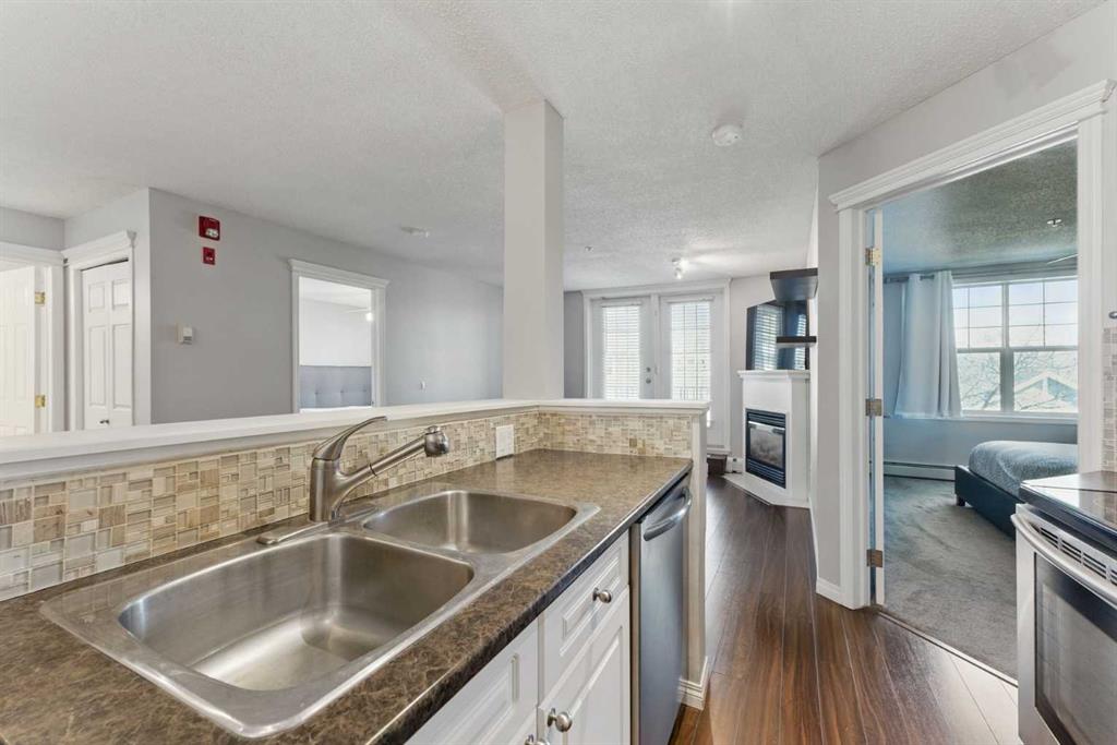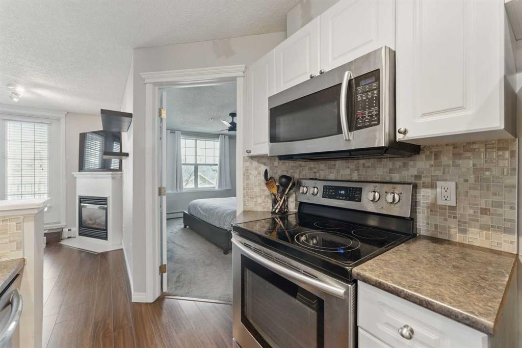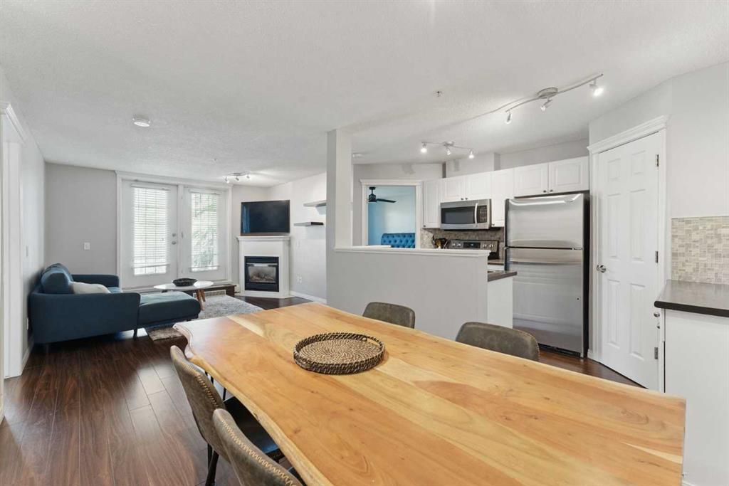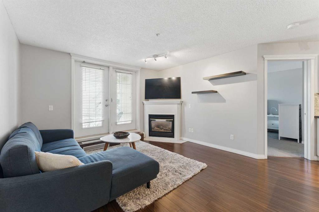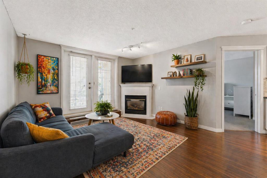 This stylish 2-bedroom condo offers a bright, open-concept layout designed for both everyday living and entertaining. The inviting living room features a cozy gas fireplace and French doors leading to a private balcony—perfect for morning coffee or evening unwinding.