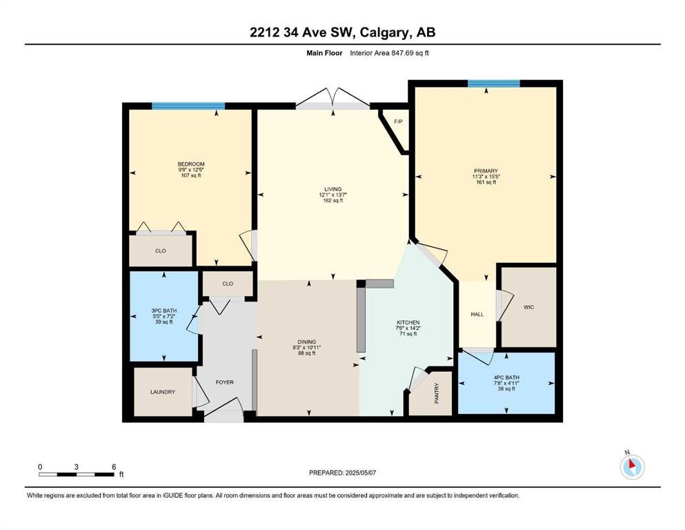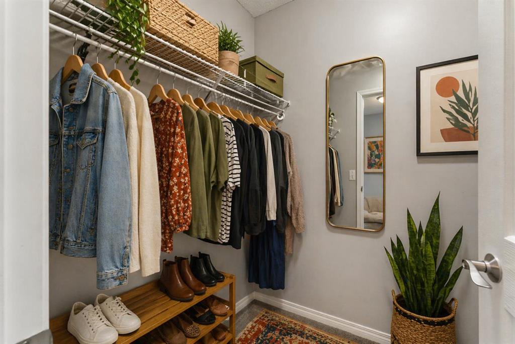The spacious primary bedroom includes a walk-in closet and a 4-piece ensuite, while the second bedroom is generously sized and ideally positioned next to a 3-piece bathroom—perfect for guests, roommates, or a home office.