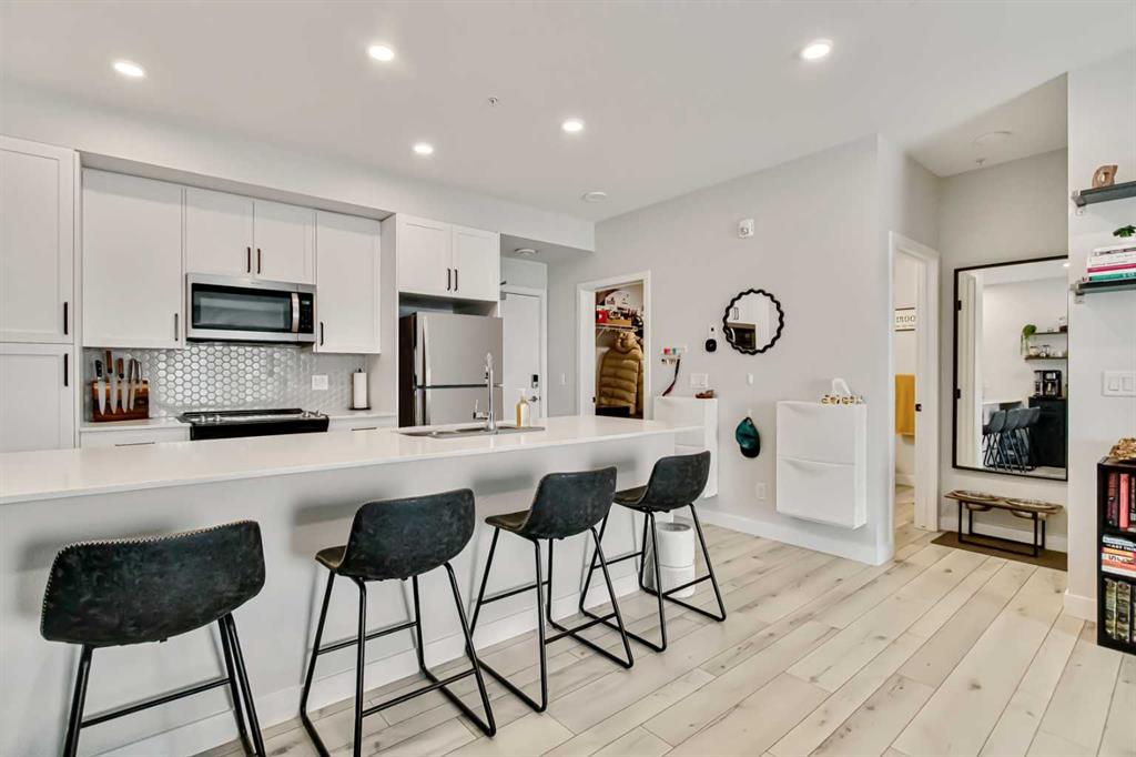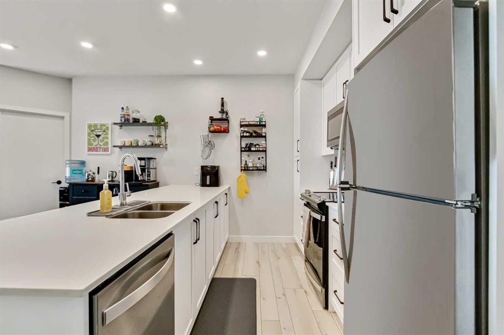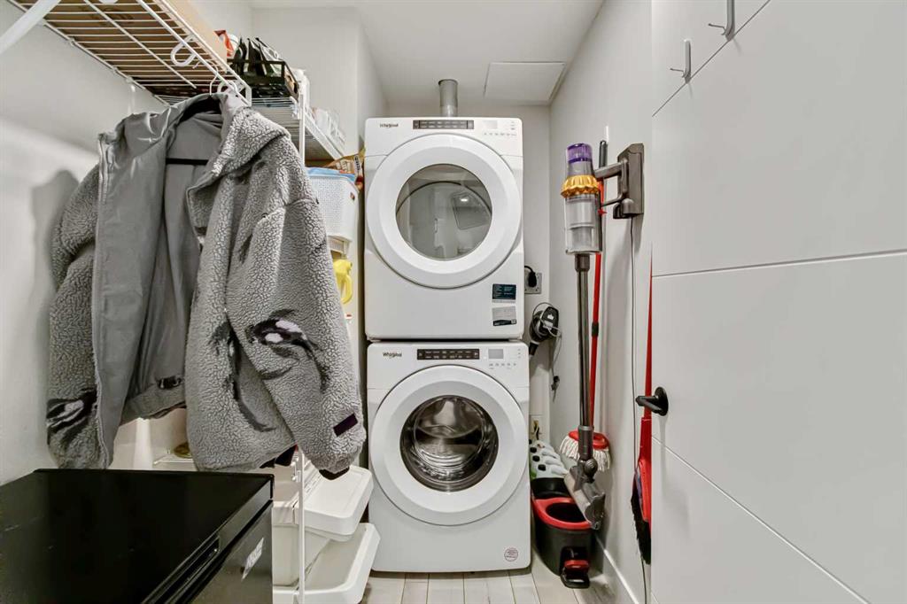 This unit is loaded with extras, including in suite laundry, central air conditioning, high end finishes and smart home features such as Kasa light switches, a Weiser smart lock and an Ecobee thermostat. You’ll also enjoy the added convenience of a dedicated storage unit and a parking stall ideally located right by the front entrance.