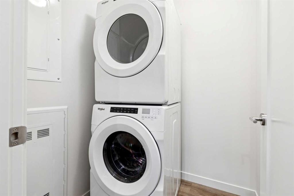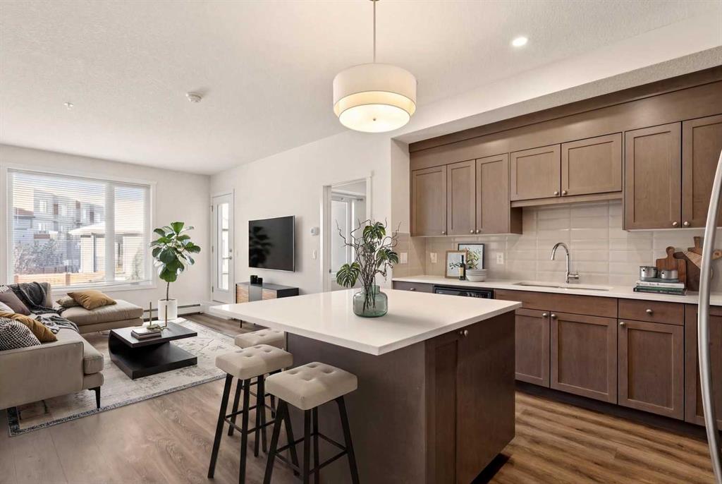 Inside, the open-concept layout creates a warm and welcoming flow between the kitchen, dining, and living areas—perfect for everyday living or entertaining. The modern kitchen is fully upgraded with stainless steel appliances, quartz countertops, soft-close cabinetry, an undermount sink, and a generous island that anchors the space. The primary bedroom offers a walk-through closet and a private 3-piece ensuite, while the second bedroom and full bathroom provide flexibility for guests, a home office, or roommates.