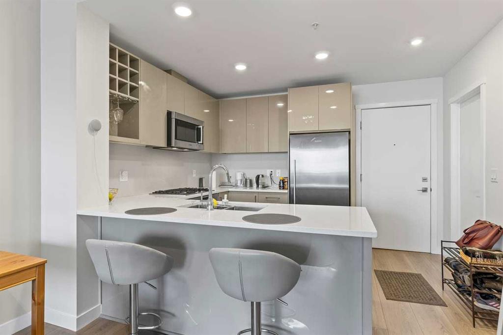 Experience a premium urban lifestyle in the heart of Hillhurst with this spacious one-bedroom condo at The Kensington, where high-quality construction meets sophisticated design. The interior features floor-to-ceiling windows and a patio door, which fill the well-appointed space with natural light and showcase peaceful west-facing views. This thoughtfully designed condo offers a full-sized kitchen with ample cabinet and counter space, upgraded appliances, and an open layout that connects to the dining and living areas, creating the perfect space to prepare and entertain. The full-sized primary bedroom has a walk-through closet to the 4pc luxury bathroom, including a separate soaker tub and walk-in shower. Outdoor living enthusiasts will appreciate the oversized west-facing balcony (18’9’x15’9′) that extends the living space beautifully. Other key features include insuite laundry, custom cabinetry for optimal storage, central air conditioning, titled underground parking, assigned separate storage lockers, secure bicycle storage, a car wash bay, visitor parking, and pet-friendly policies. The Kensington by BUCCI is a concrete construction, ensuring maximum soundproofing and durability. Located just steps from downtown Calgary and the Sunnyside C-Train station, this location offers a truly walkable lifestyle with all the local amenities nearby. Plus, easy access to the city’s main roads makes this property the perfect blend of modern luxury, convenient living, and affordability.