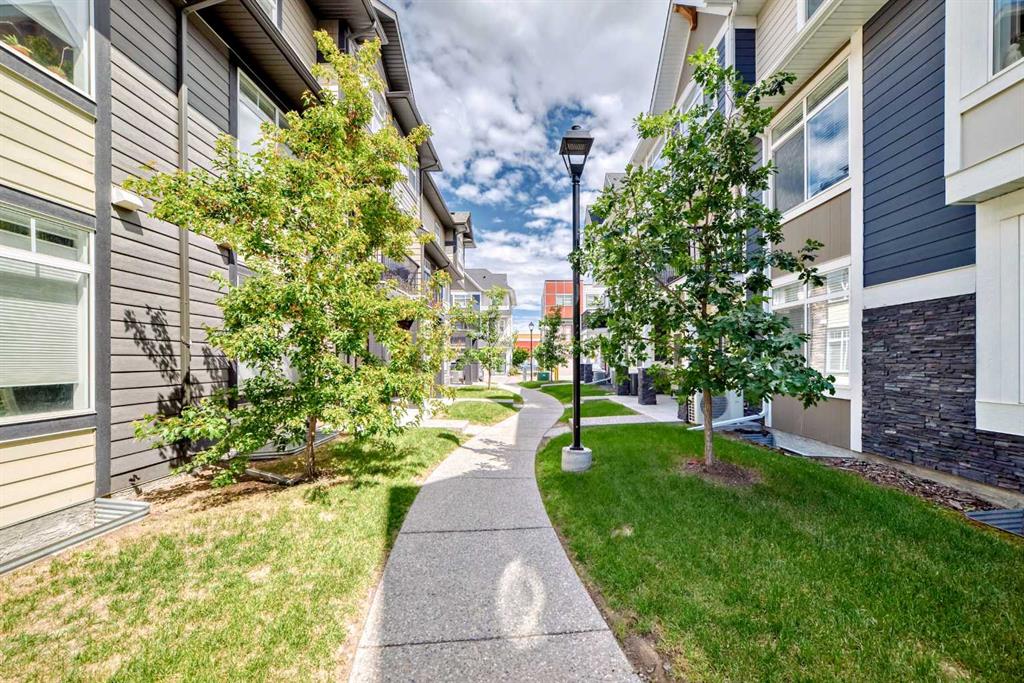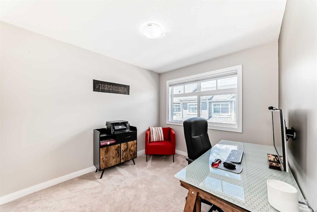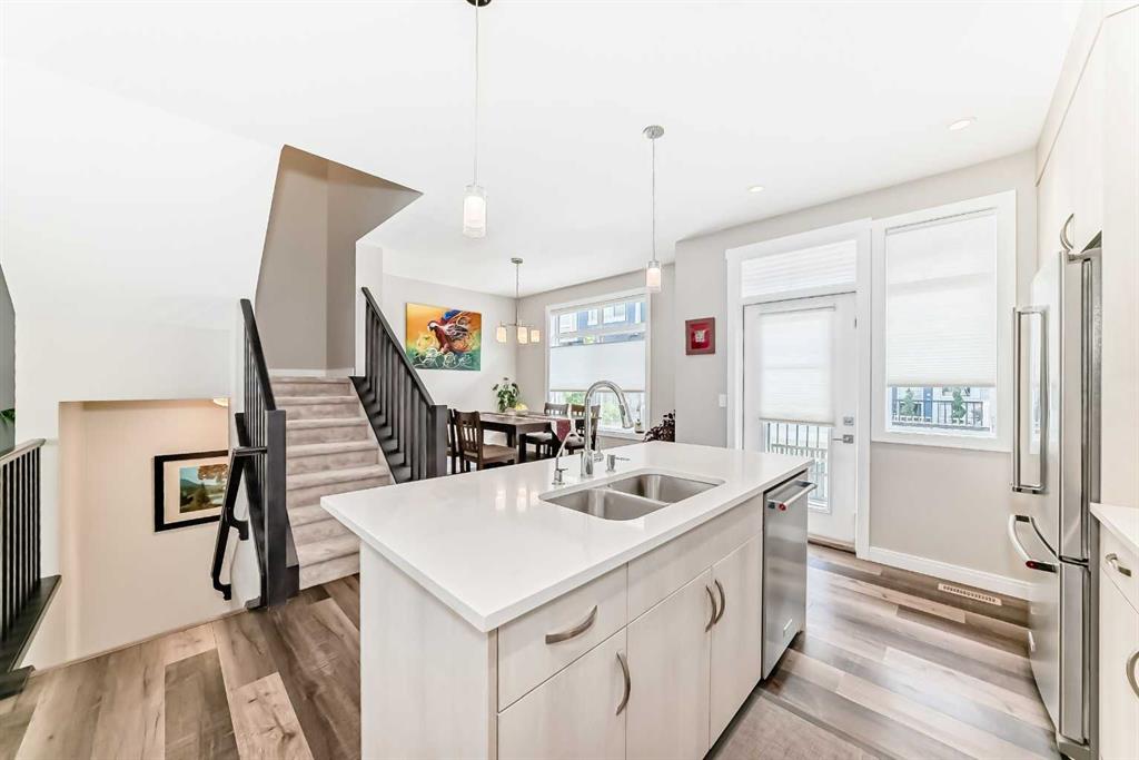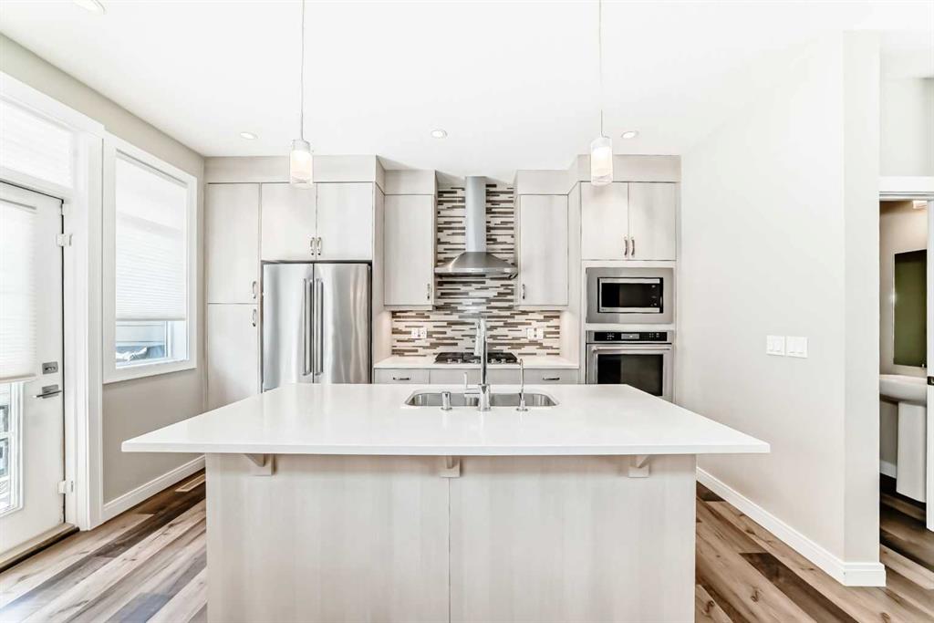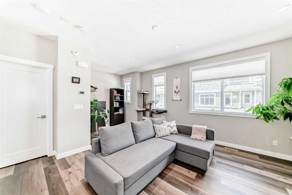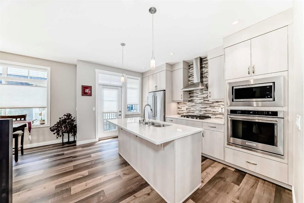 “UNIT IS LOCATED INSIDE THE COMPLEX AWAY FROM NOISY MAIN ROADS. OVER $30,000 WORTH OF UPGRADES INCLUDING APPLIANCES, WINDOW COVERINGS, WATER FILTRATION AND SOFTENING, AND FULLY FINISHED GARAGE”. Welcome to this immaculate townhouse located in West Springs, one of the most desirable neighborhoods in the city! Upon entering, you will notice the pristine condition of the unit, spacious office and foyer with 9′ ceilings, and elegant stained stair railings. On the main floor, you will also see 9′ ceilings along with the fabulous open concept that will take your breath away and plenty of natural light that helps highlight the beautiful gourmet kitchen with quartz countertops, a big island, and ample living and dining rooms. On the upper level, you will discover two very spacious bedrooms, the laundry room, a full bathroom and the main retreat for the owners. The primary suite has a spacious bathroom featuring quartz countertops with his and hers vanities, a shower, and a bathtub for relaxation. This suite also offers a walk-in closet and all three bedrooms have beautiful modern blinds with blackout option. The property has been under the same ownership since its construction and features all upgraded appliances (Energy Star). Also includes reverse osmosis filtration equipment, water softener, fully finished garage with epoxy floor and 220V outlet for electric vehicle chargers, ethernet connection in office and one of the bedrooms, and a bidet in the master bathroom. The unfinished 399 sq-ft basement is a blank canvas for your imagination to transform. The complex is pet friendly (board approval required) and is surrounded by schools, parks, shopping malls, walking and cycling paths. It has easy access to Stoney Trail. Do not miss the opportunity to check this beautiful and exceptionally well-maintained property, and make it your forever home!
