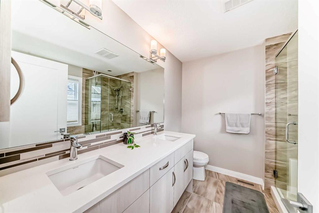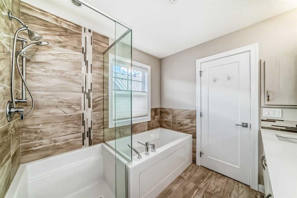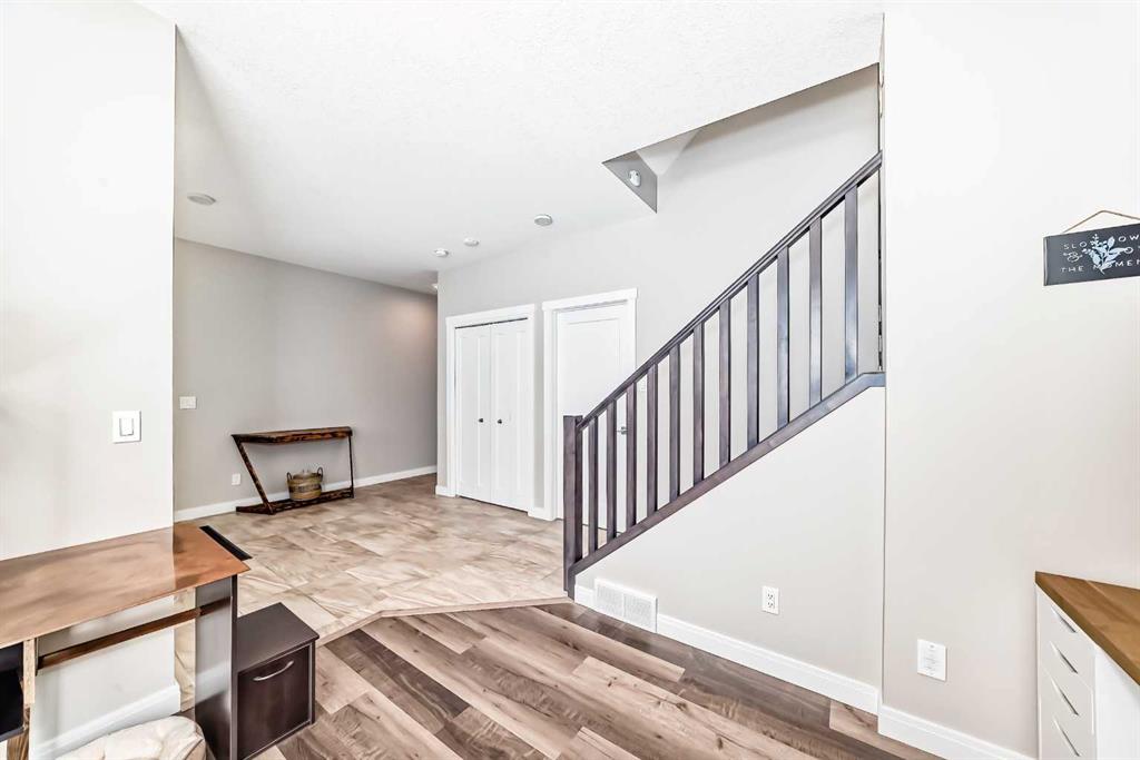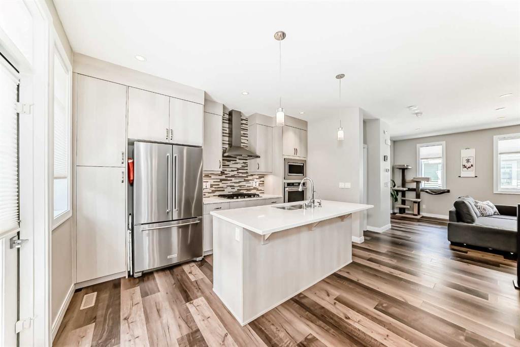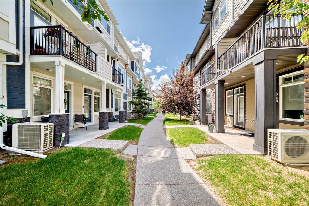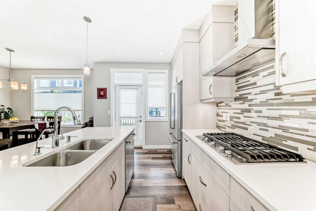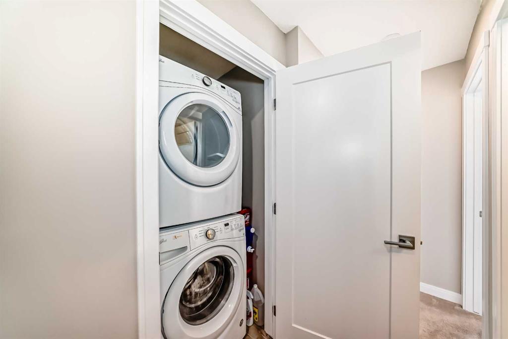 “UNIT IS LOCATED INSIDE THE COMPLEX AWAY FROM NOISY MAIN ROADS. OVER $30,000 WORTH OF UPGRADES INCLUDING APPLIANCES, WINDOW COVERINGS, WATER FILTRATION AND SOFTENING, AND FULLY FINISHED GARAGE”. Welcome to this immaculate townhouse located in West Springs, one of the most desirable neighborhoods in the city! Upon entering, you will notice the pristine condition of the unit, spacious office and foyer with 9′ ceilings, and elegant stained stair railings. On the main floor, you will also see 9′ ceilings along with the fabulous open concept that will take your breath away and plenty of natural light that helps highlight the beautiful gourmet kitchen with quartz countertops, a big island, and ample living and dining rooms. On the upper level, you will discover two very spacious bedrooms, the laundry room, a full bathroom and the main retreat for the owners. The primary suite has a spacious bathroom featuring quartz countertops with his and hers vanities, a shower, and a bathtub for relaxation. This suite also offers a walk-in closet and all three bedrooms have beautiful modern blinds with blackout option. The property has been under the same ownership since its construction and features all upgraded appliances (Energy Star). Also includes reverse osmosis filtration equipment, water softener, fully finished garage with epoxy floor and 220V outlet for electric vehicle chargers, ethernet connection in office and one of the bedrooms, and a bidet in the master bathroom. The unfinished 399 sq-ft basement is a blank canvas for your imagination to transform. The complex is pet friendly (board approval required) and is surrounded by schools, parks, shopping malls, walking and cycling paths. It has easy access to Stoney Trail. Do not miss the opportunity to check this beautiful and exceptionally well-maintained property, and make it your forever home!