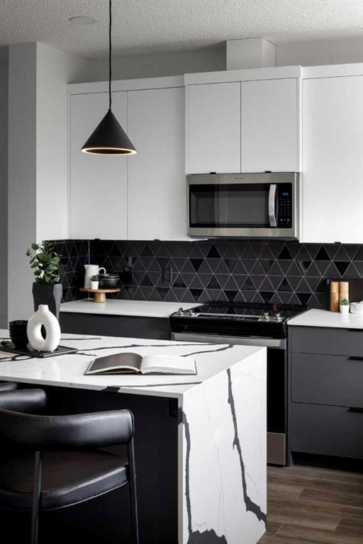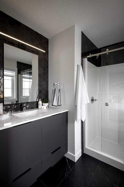 Welcome to the Cascade by Shane Homes, located in the vibrant community of Cornerstone. This brand new 3 bedroom, 2.5 bath home includes a spacious family room and thoughtful design throughout. The main floor offers 9′ ceilings, luxury vinyl plank flooring, and a side entry with a 9′ basement height that is perfect for future development. The modern kitchen features stone countertops, 42″ upper cabinets with a bulkhead, a chimney hood fan, built-in microwave, and all appliances included. Bathrooms on the second floor feature tile flooring, and knockdown ceilings add a stylish touch throughout. Gravel parking pad included. Photos are of the Cascade showhome for representation purposes only. Move in tentatively scheduled for Spring 2026.