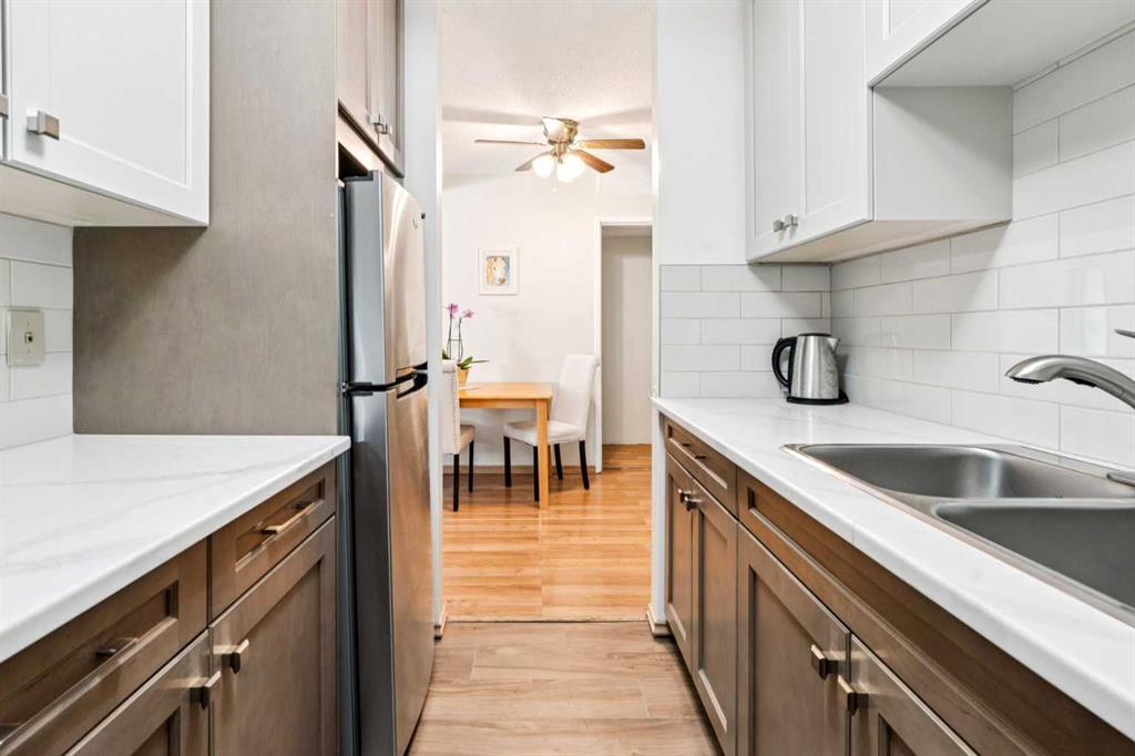 Like Living in a Park! Mature Trees grace the grounds of this well-maintained complex in the Heart of Amenity-rich Acadia. Sunny 2 Bedroom END Unit Townhome with Stunning NEW Custom Kitchen Renovation – OVER $35,000 – Knockdown Ceilings, Quartz Counters, STAINLESS STEEL Appliances & Gorgeous HIGH QUALITY Soft Close Cabinetry with X-TRA Height Upper Cabinets & Dovetailed drawers. Two Spacious Upper Bedrooms with TREED Views, a large Bathroom with newer toilet, shower head & flooring, a Private Fenced Yard, lots of extra storage space in the basement & 1 nearby Parking stall with Plug-in. Updated Vinyl Windows, Newer Hot Water Tank (2 years), Professionally Managed with Affordable Condo Fees ($312.36) that Include Water & Sewer, & it’s PET-FRIENDLY too! Let’s talk Location – a Short Walk to Schools, Area Shops & Restaurants, the Tennis Academy, Acadia Recreation Complex, Aquatic & Fitness Centre, Transit & More!