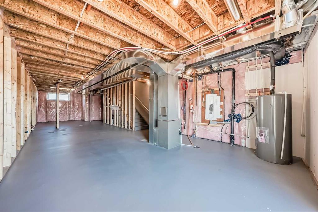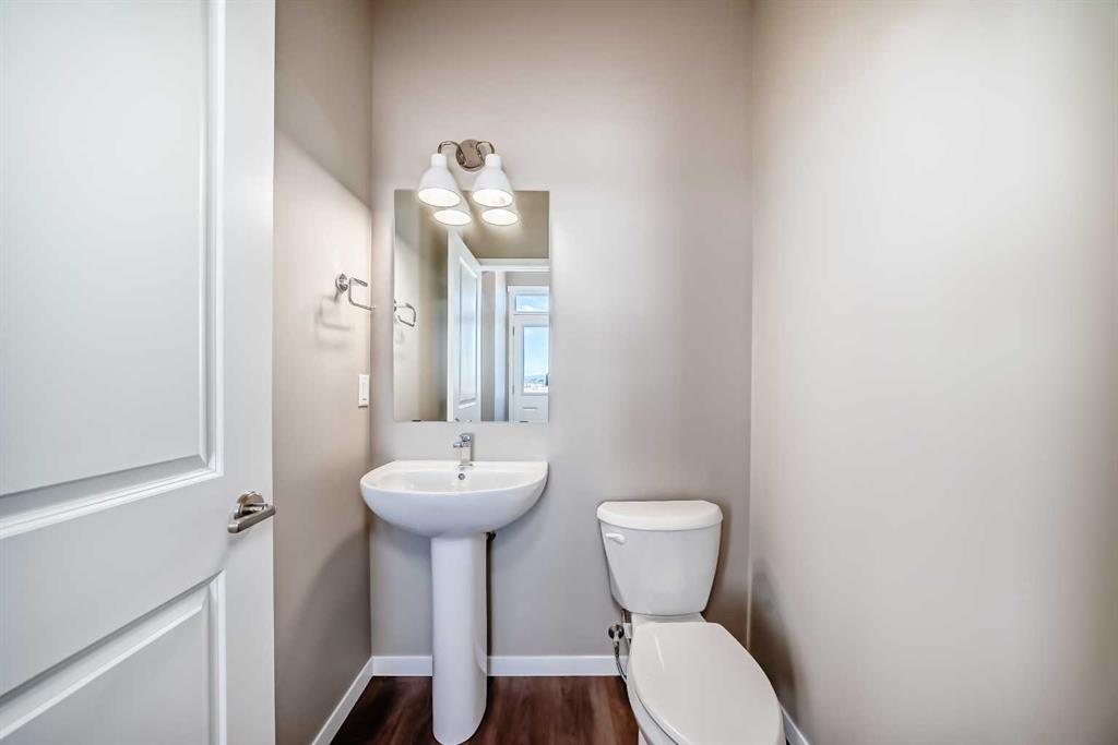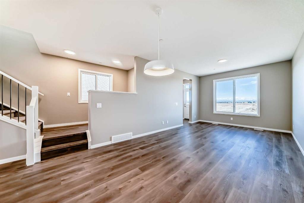 This brand-new “Rayn” is designed for real life—bright, modern, and thoughtfully laid out so it feels easy from the moment you walk in. Rich vinyl plank flooring, clean lines, and a fresh, timeless palette set the tone, while abundant windows keep the main level airy and sun-filled throughout the day. Thoughtful sightlines create an open feel without sacrificing defined, usable rooms. At the heart of the home, the central kitchen blends style and function with natural wood-tone cabinetry to the bulkhead, a sleek marble style backsplash, chimney hood fan, stainless steel appliances, and crisp white quartz counters. The oversized island is made for morning coffee, quick meals, and casual entertaining, with space for seating so guests naturally gather where you want them. The dining area sits perfectly between the kitchen and living room with space for a full-sized table, ideal for holiday dinners, board-game nights, or weekend brunches. The rear living room is anchored by an oversized window, creating a comfortable space for movie nights and relaxing evenings. A smart rear entry keeps everyday life organized and provides access to your raised deck to enjoy the west facing views on those long summer nights. The convenient 2-piece bath is perfectly placed for guests and busy mornings. Two standout flex spaces elevate the layout: a versatile main-floor flex room just off the kitchen (home office, playroom, or gym) and a raised homework/tech nook overlooking the main floor—practical, clean, and great for keeping laptops, homework, and daily clutter off the kitchen island. Upstairs, a cozy bonus room offers a second lounge for kids, reading, or a media space. The primary retreat is tucked quietly at the back with an oversized window, a generous walk-in closet, and a stylish 4-piece ensuite featuring dual sinks and a full-size shower, finishes you’d expect in a much larger home. Two additional rooms are perfect for the growing family and the upper floor laundry ensures wash day is a breeze. Downstairs, the walkout basement adds major lifestyle value with direct backyard access and the potential for a bright future rec space. Step outside to enjoy the rear deck—perfect for BBQs and summer evenings. And later, you’ll appreciate a key planning advantage: the separate side entrance for future flexibility, ideal for a suite or private lower-level development (secondary suite subject to approval and permitting by the city/municipality). Set in southeast Calgary’s growing Hotchkiss community, you’ll enjoy quick access to Stoney Trail and 22X, plus nearby Mahogany, Seton, shopping, services, and the South Health Campus—along with pathways and natural spaces that make it easy to get outside and enjoy the neighbourhood.