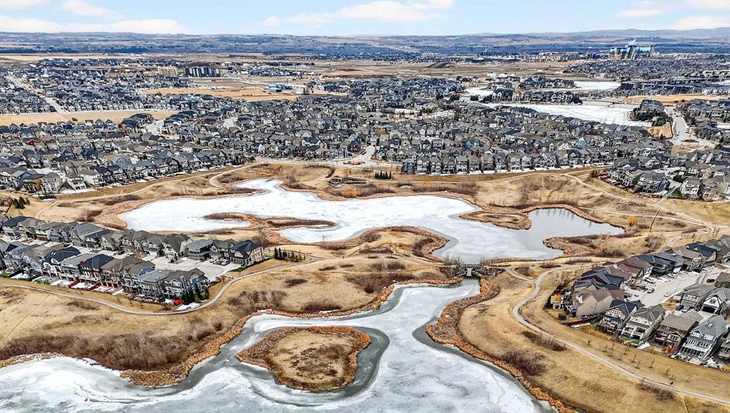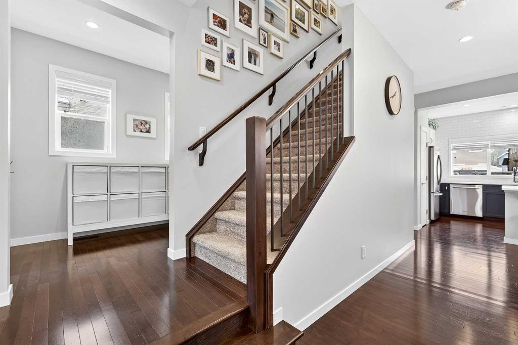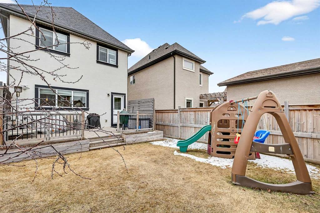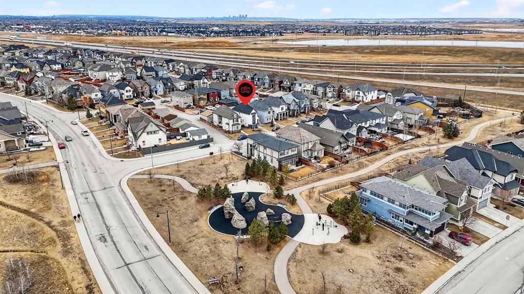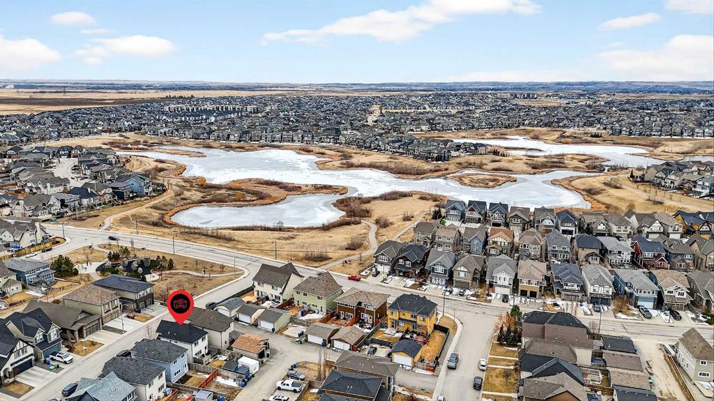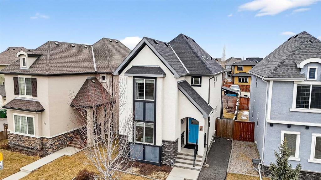 Welcome to 21 Marquis Heights nestled in the prestigious Marquis enclave of the highly sought-after lake community of Mahogany where pride of ownership is evident, neighbours become lifelong friends & community truly comes to life through block parties & shared moments. This is a place where families flourish & connection matters. Beautifully finished in timeless stucco & stone, this impressive home offers over 2200 sqft of thoughtfully designed living space, perfectly tailored for today’s busy family while showcasing a stunning collection of upgrades throughout. With 4 spacious bedrooms & a charming main floor office, there is ample room for both everyday living & work-from-home flexibility. Step inside & be welcomed by soaring 9-foot ceilings & a spacious foyer complete with built-in shoe cabinetry, setting the tone for the functional elegance found throughout the home. The inviting living room immediately captures your attention with floor-to-ceiling built-in bookshelves, creating both a striking focal point & warm, lived-in feel. Rich hardwood flooring flows seamlessly across the main level, grounding the home’s bright, modern colour palette. The layout effortlessly guides you past the private office—bathed in natural light from 2 windows—into the generous dining area & beautifully curated kitchen. Designed to impress, the kitchen is a perfect balance of style & function. Horizontal white subway tile provides a crisp backdrop to warm earth-toned open shelving & a designer hood fan, while elegant quartz countertops contrast beautifully against the deep blue cabinetry. Stainless steel appliances, 3 sun-filled windows overlooking the backyard & pendant lighting over the extended island complete this exceptional space—ideal for both entertaining & everyday life. At the rear, a spacious mudroom with built-in storage offers practical organization for busy households. Upstairs, you’ll find 3 generously sized bedrooms, including a stunning primary retreat featuring a vaulted ceiling, spa-inspired 5-piece ensuite with dual vanities, an oversized standalone shower, & cohesive designer finishes throughout. A walk-in closet, full main bathroom & a well-appointed laundry room with built-in cabinetry complete this level. The fully finished basement expands your living space even further, offering a comfortable family room with extensive built-in cabinetry, a large guest bedroom with walk-in closet & a full bathroom—perfect for visitors or growing families. 2 additional storage areas provide exceptional functionality. Step outside to your expansive full-length deck, complete with garden beds, privacy screening & beautifully sized yard designed for both relaxation & entertaining. A large shed & rear parking for 2 vehicles offer convenience today, with the option to build a future double detached garage. Perfectly positioned kitty-corner to Rock Park & just steps from the wetlands & scenic pathways. 21 Marquis Heights is a lifestyle defined by community, comfort & connection