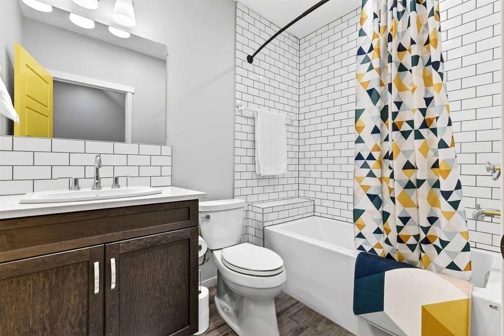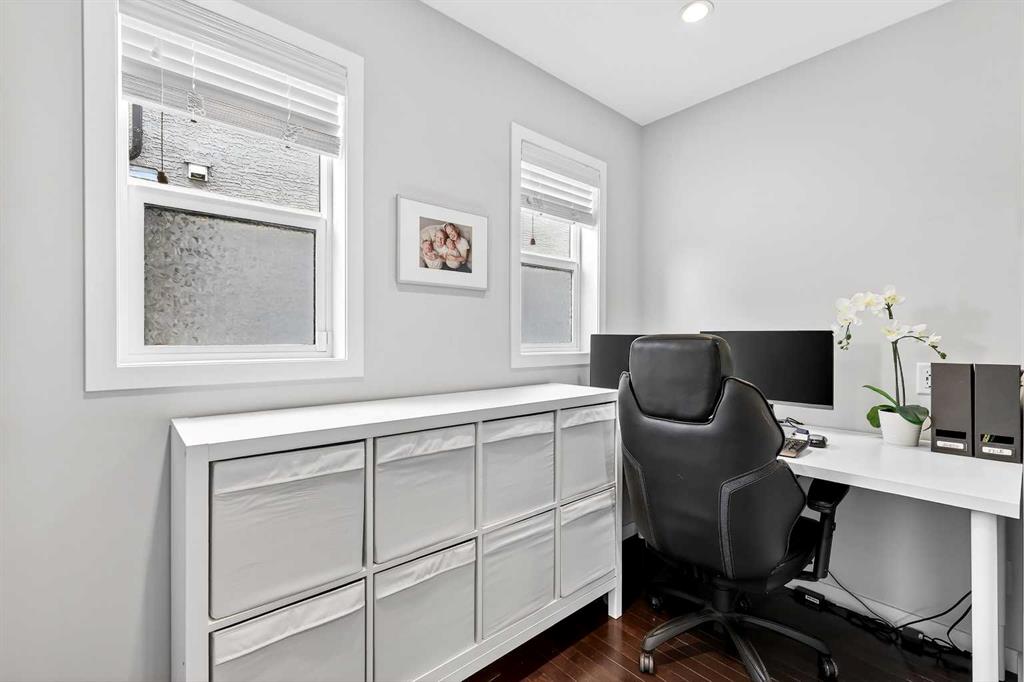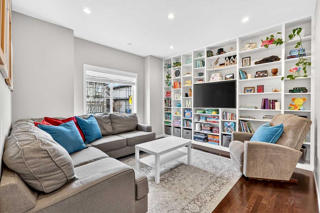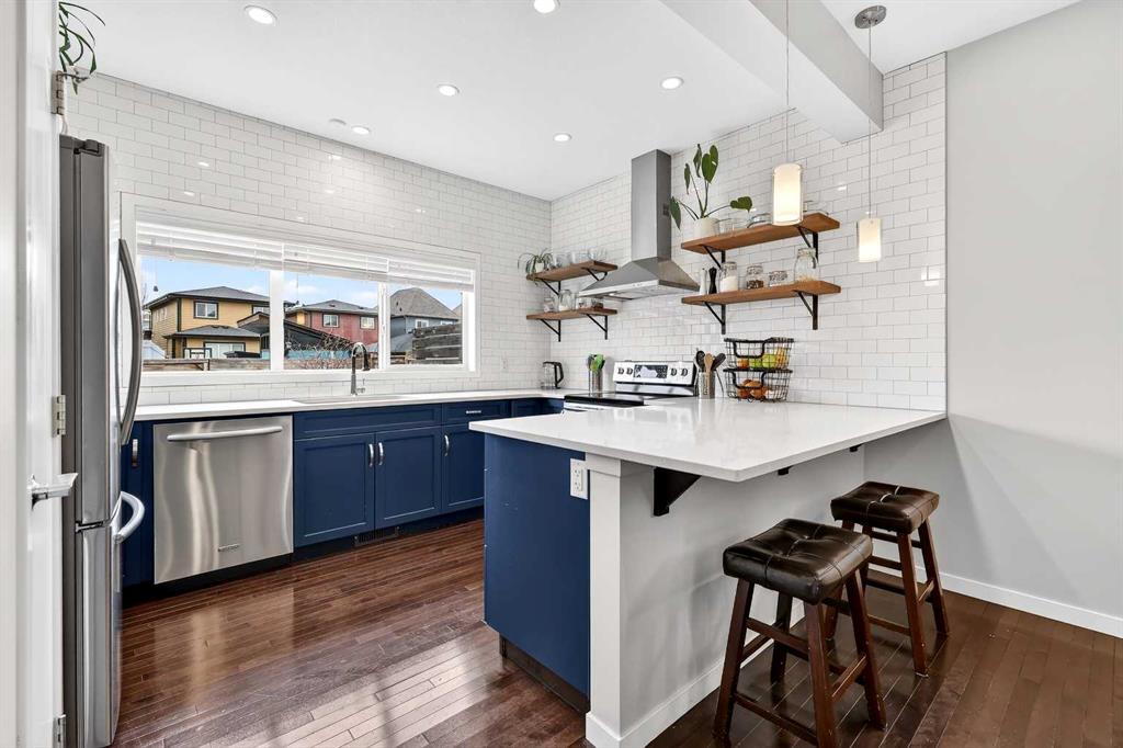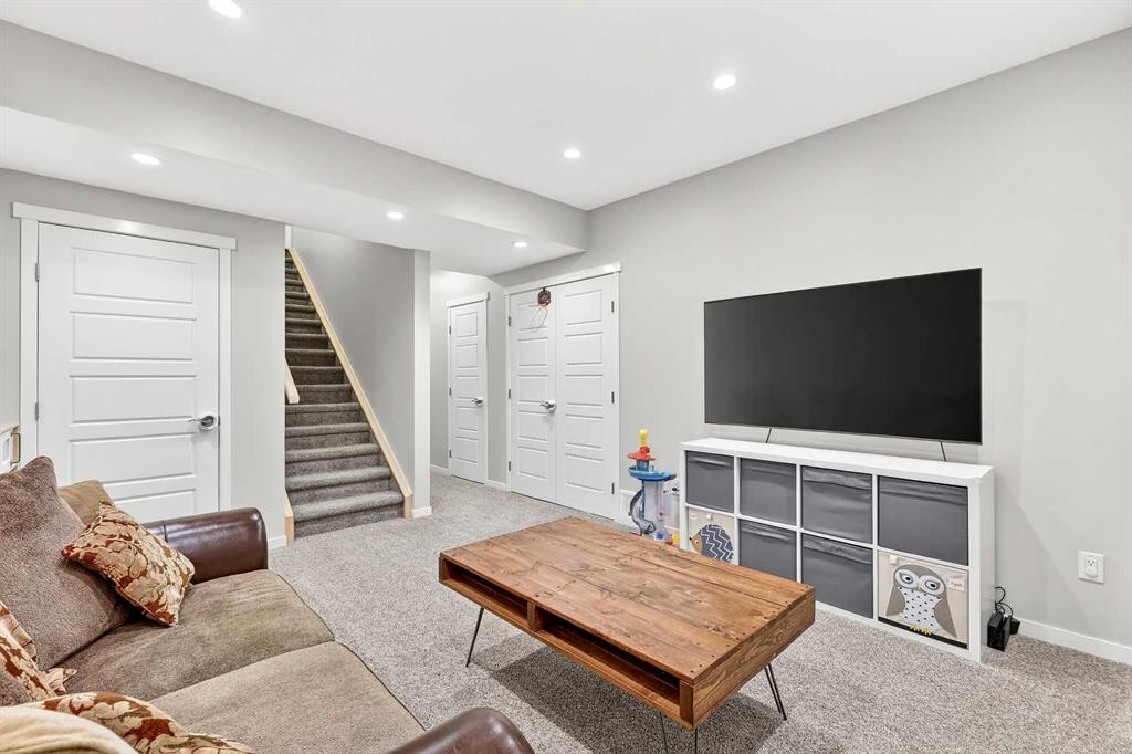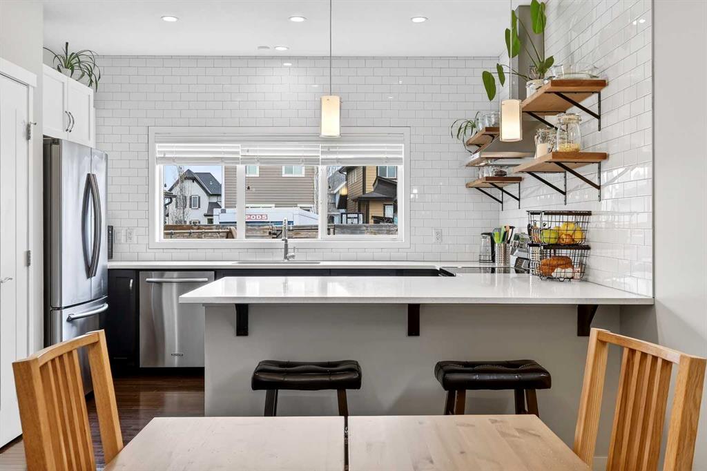 Welcome to 21 Marquis Heights nestled in the prestigious Marquis enclave of the highly sought-after lake community of Mahogany where pride of ownership is evident, neighbours become lifelong friends & community truly comes to life through block parties & shared moments. This is a place where families flourish & connection matters. Beautifully finished in timeless stucco & stone, this impressive home offers over 2200 sqft of thoughtfully designed living space, perfectly tailored for today’s busy family while showcasing a stunning collection of upgrades throughout. With 4 spacious bedrooms & a charming main floor office, there is ample room for both everyday living & work-from-home flexibility. Step inside & be welcomed by soaring 9-foot ceilings & a spacious foyer complete with built-in shoe cabinetry, setting the tone for the functional elegance found throughout the home. The inviting living room immediately captures your attention with floor-to-ceiling built-in bookshelves, creating both a striking focal point & warm, lived-in feel. Rich hardwood flooring flows seamlessly across the main level, grounding the home’s bright, modern colour palette. The layout effortlessly guides you past the private office—bathed in natural light from 2 windows—into the generous dining area & beautifully curated kitchen. Designed to impress, the kitchen is a perfect balance of style & function. Horizontal white subway tile provides a crisp backdrop to warm earth-toned open shelving & a designer hood fan, while elegant quartz countertops contrast beautifully against the deep blue cabinetry. Stainless steel appliances, 3 sun-filled windows overlooking the backyard & pendant lighting over the extended island complete this exceptional space—ideal for both entertaining & everyday life. At the rear, a spacious mudroom with built-in storage offers practical organization for busy households. Upstairs, you’ll find 3 generously sized bedrooms, including a stunning primary retreat featuring a vaulted ceiling, spa-inspired 5-piece ensuite with dual vanities, an oversized standalone shower, & cohesive designer finishes throughout. A walk-in closet, full main bathroom & a well-appointed laundry room with built-in cabinetry complete this level. The fully finished basement expands your living space even further, offering a comfortable family room with extensive built-in cabinetry, a large guest bedroom with walk-in closet & a full bathroom—perfect for visitors or growing families. 2 additional storage areas provide exceptional functionality. Step outside to your expansive full-length deck, complete with garden beds, privacy screening & beautifully sized yard designed for both relaxation & entertaining. A large shed & rear parking for 2 vehicles offer convenience today, with the option to build a future double detached garage. Perfectly positioned kitty-corner to Rock Park & just steps from the wetlands & scenic pathways. 21 Marquis Heights is a lifestyle defined by community, comfort & connection