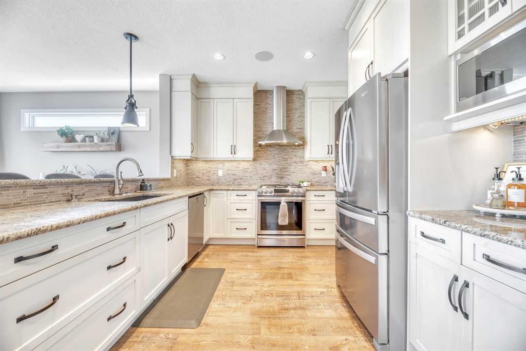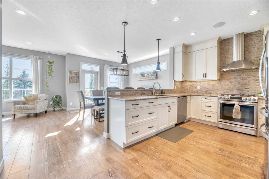 Set on a generous, beautifully landscaped lot, this impressive two-story walkout offers a perfect blend of elegance and practicality. Curb appeal is elevated with underground irrigation, a fully fenced backyard, and a triple attached heated garage with EV power and built-in sound—ideal for family life and weekend projects alike.