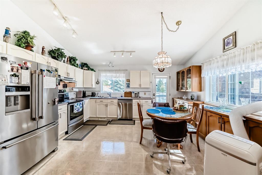 IMMEDIATE POSSESSION. This home is a must see and priced to sell!! 2 heated double GARAGES AND A CORNER LOT!!! This is a rare find!! This home has been well loved and shows pride of ownership. Walking up you will notice that yes it is a corner lot but the sidewalk does not go all the way around so just a normal amount to shovel!!! The front attached garage is 19.4×19.5 and the detached is oversized measuring 23×21 with a higher door at 7 feet. This bi-level has 4 very generous bedrooms. The main floor boasts large west and east facing windows. The living room has a natural gas fireplace and is welcoming to the open concept floor plan. The kitchen has loads and loads of cupboard and counter space, a dining area for a large table, and access to your back deck. There is also 3 bedrooms on the main floor. The primary bedroom has room for king furniture as well houses a 3 piece ensuite. Completing the main is a 4 piece bath and main floor Laundry!! The lower features a massive games area, family room with another beautiful fireplace and blower fan, 4th bedroom and another full bath. There is chairlifts installed that can be removed or stay with the home if you have limited mobility. There is lots of storage in this home as well.This home has central vacuum, a storage shed beautiful flower beds and more. This home is also situated across the street from a massive park with playground, basketball net and room to run. It is a must see!!