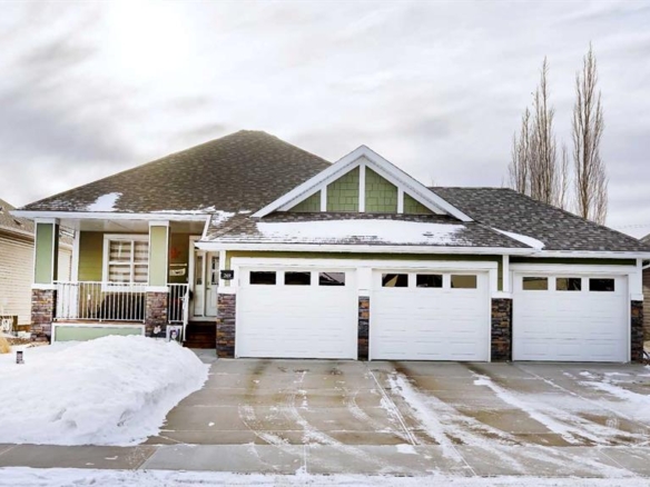 Located on a quarter acre lot in the heart of Langdon, this beautifully crafted bungalow offers space, comfort, and timeless character in a walkable, family-friendly setting close to schools and everyday shopping. A charming wrap-around porch welcomes you home and sets the tone for the quality and warmth found throughout. The main floor features a very open and inviting floorplan, ideal for both daily living and entertaining. The spacious living room is anchored by a cozy gas fireplace and enhanced by a large bay window that overlooks the expansive backyard. The kitchen is thoughtfully designed with abundant dark cabinetry, ample counter space, stainless steel appliances, a built-in pantry, and a central island with a raised breakfast bar. Adjacent to the kitchen is a sunny dining nook with another bay window, filling the space with natural light and offering lovely backyard views. Three well-appointed bedrooms are located on the main level, including a large primary suite complete with a walk-in closet and a private three-piece ensuite bath. While the other 2 bedrooms are steps away from the 4 piece bathroom and a dedicated laundry room offers excellent storage and a convenient utility sink. Rich wood flooring, custom built-ins, and detailed woodwork throughout the main level add warmth and character to the home. The lower level offers endless possibility and is developed with a large family room, two additional bedrooms, a den / play area and a three-piece bathroom. Outside, the oversized lot truly shines. The extra-long driveway easily accommodates multiple vehicles or an RV. The backyard is expansive and well equipped with a deck, pergola, two storage sheds, and plenty of room for kids, pets, or future landscaping ideas. This is a rare opportunity to own a spacious bungalow with classic craftsmanship, incredible outdoor space, and a prime Langdon location.