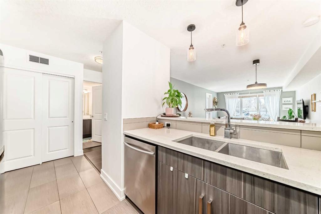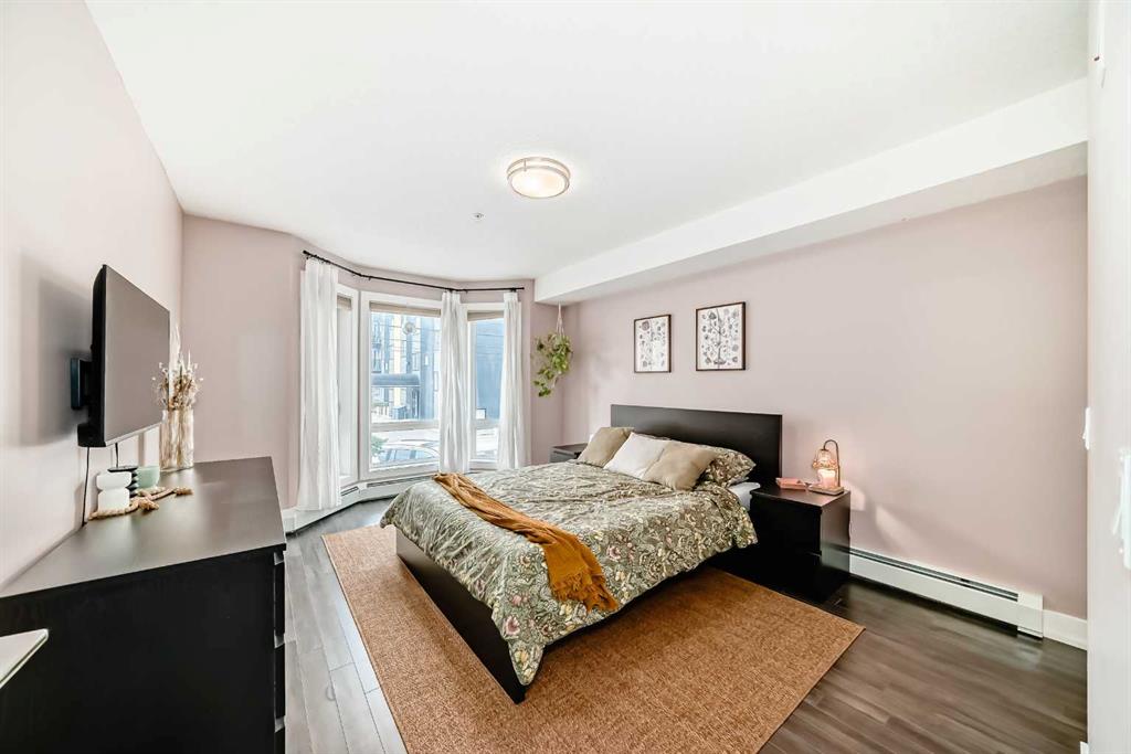Location! A beautiful and bright 2 bedroom + 2 bathroom apartment located minutes from Downtown Core and LRT station. Close to Trendy Shops, Pubs, Restaurants and Bike Path that runs along the Bow River. This unit offers just under 1000 sqft and an open concept with a great floor plan! Large master bedroom with an en-suite bathroom and a walk-in closet. The second bedroom also has a walk-in closet and a Jack and Jill bathroom. The laundry and storage are both within the unit adding privacy and functionality. The unit comes with a titled underground parking stall. Close to restaurants, shopping, schools and transit. The condo fees includes heat & water.