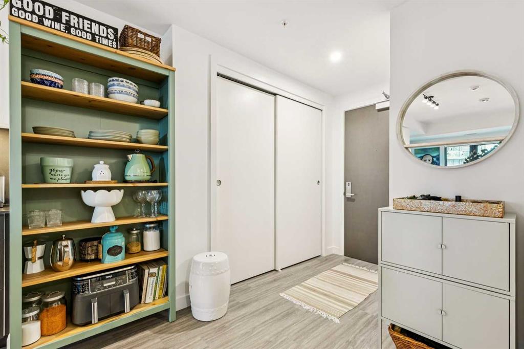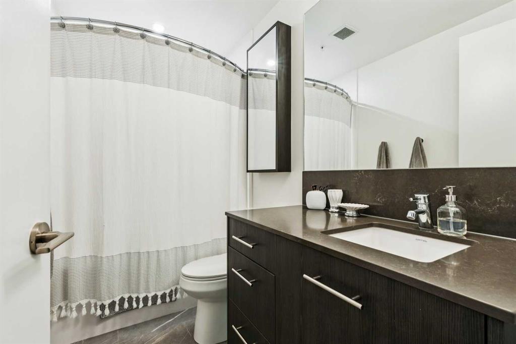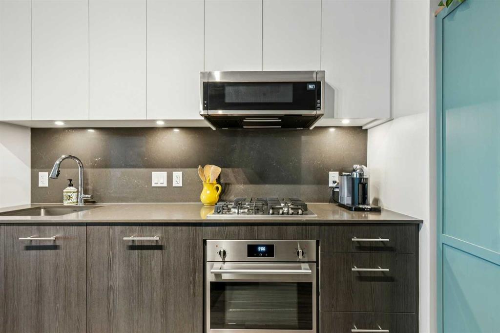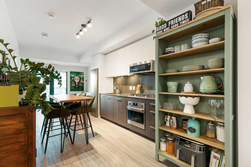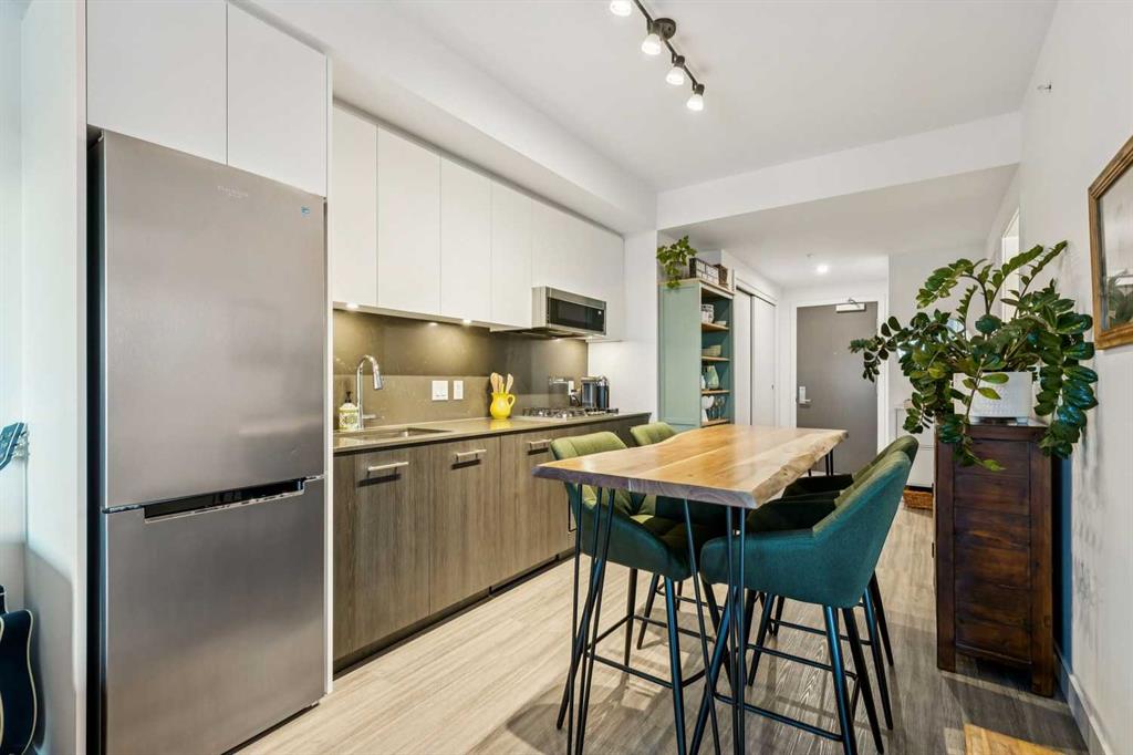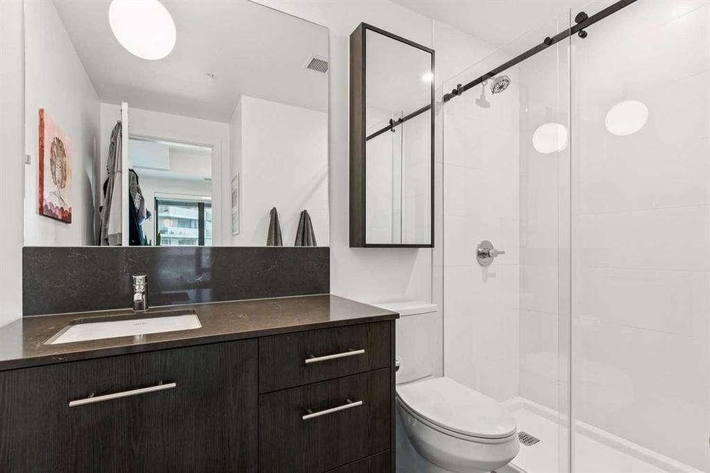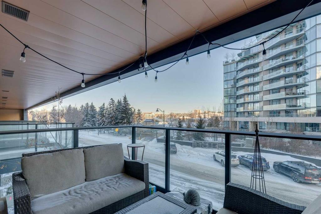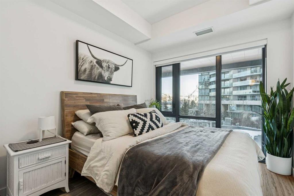 Welcome to Unit 210 at First & Park — in Calgary’s highly sought-after Eau Claire community, where the city meets the river. This contemporary 2 bedroom, 2 bathroom home blends modern design with everyday functionality, offering exceptional value in one of downtown’s most desirable buildings. The open-concept layout showcases a sleek kitchen with quartz countertops, stainless steel appliances, and ample cabinetry, seamlessly flowing into a bright living area that extends to your large balcony overlooking the Peace Bridge and the River – the perfect place to enjoy morning light or unwind after work.The spacious bedroom, full bathroom, and in-suite laundry provide comfort and convenience, while the titled parking stall adds everyday practicality. Residents enjoy premium amenities including a fully equipped fitness centre, stylish party lounge, an outdoor patio and gas BBQ hookups, secure parcel lockers, two elevators, and concierge service seven days a week — all within a quiet, boutique-style building. Located just steps from the Bow River pathways, Prince’s Island Park, Eau Claire Market, and downtown’s top restaurants, cafés, and shops, this home offers the perfect balance of lifestyle and location. Whether you’re a first-time buyer, investor, or searching for a refined downtown residence – this home checks every box for sophisticated inner-city living. Book your showing today!
