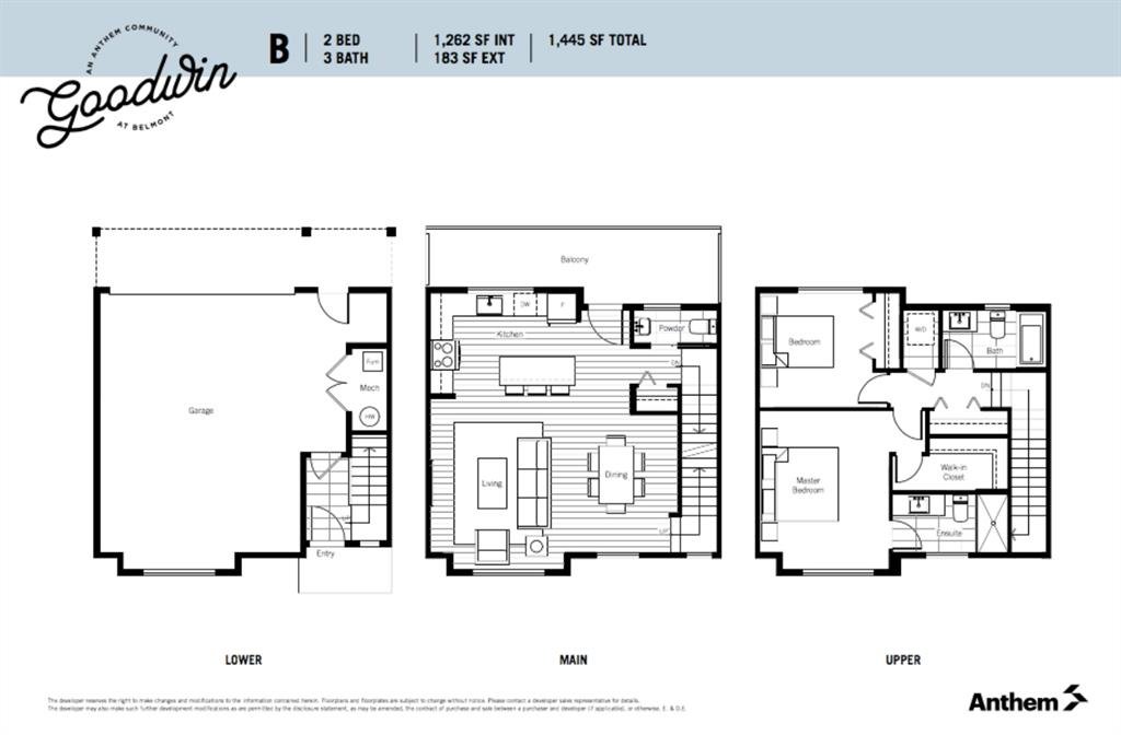 Welcome home! This is your opportunity to live at Goodwin by Anthem in the brand-new master planned community of Belmont. Your spacious open concept townhome comes complete with high end finishes, appliances and an attached double car garage. Inspired by west coast aesthetic, translated to contemporary prairie architecture the homes are bright, modern and approachable. Whether you are a family, young professional, downsizer or investor these homes bring forth value, craftsmanship and quality that you do not want to live without. Amenities include exclusive access to the Goodwin outdoor living space including picnic tables, a fire pit and dog run! Goodwin is surrounded by shopping, parks, recreation centers, schools and much more. NOTE: Unit 210 is a B Plan, 2 BR 2.5 Bath. This is a quick possession home. Photos are of display homes. The area size was calculated by applying the RMS to the blueprints provided by the builder.
